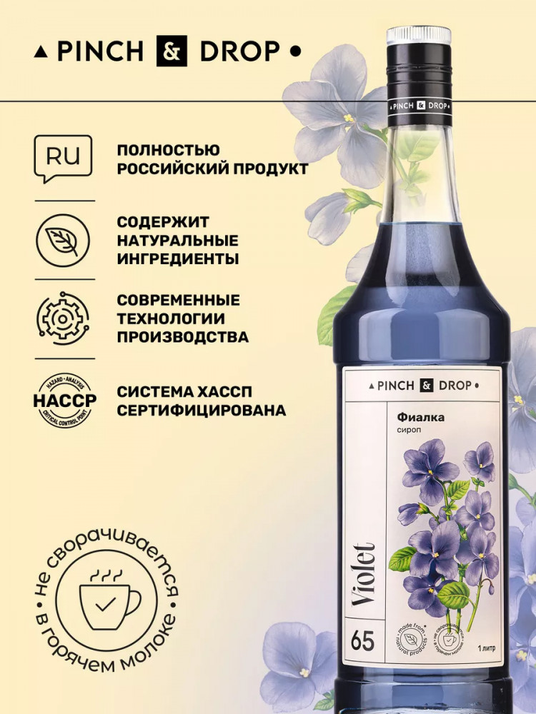 Сироп «Фиалка» — дополнение цветочной коллекции пищевых ингредиентов. Какой вкус у фиалки — он сладкий и нежный, выраженный цветочный оттенок придает продукту свежесть, а его удивительный аромат переносит на цветущую поляну. Добавьте к этому сахарную сладость, которая характерная для сиропов для напитков — и вы получите этот замечательный вкус.