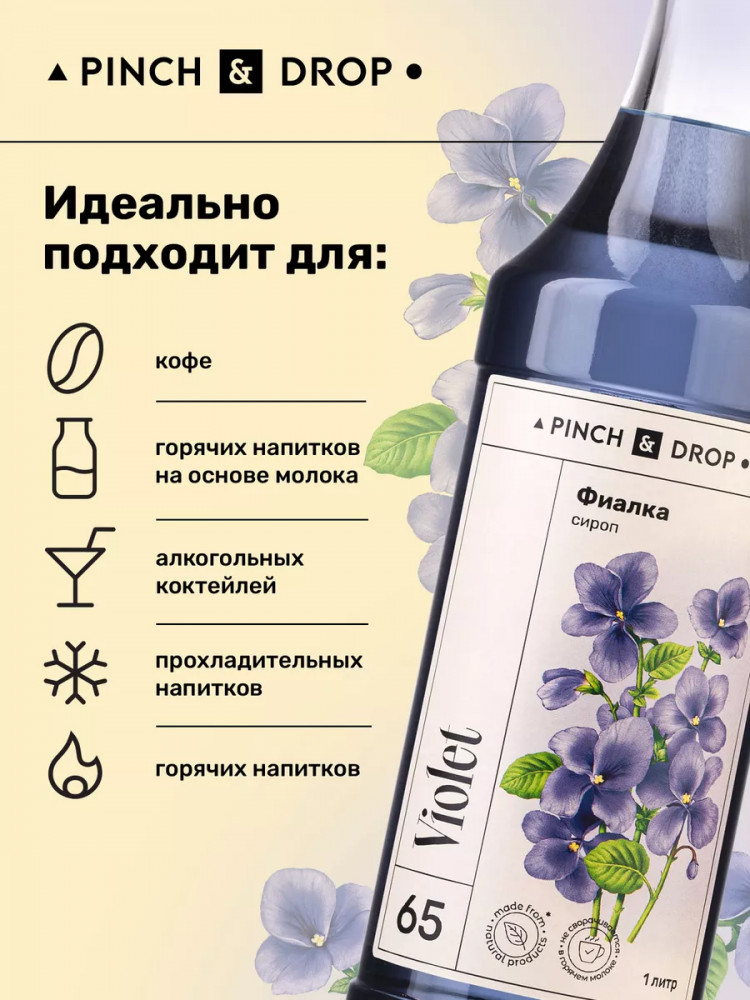 Цветочные вкусы популярны сегодня в кофейнях и в ресторанах. С таким сахарным сиропом готовят неповторимые рецепты, используют ингредиент как: сироп для кофе; сироп для коктейлей, для безалкогольных и алкогольных коктейлей; сироп для мороженного; сироп для лимонада; сироп для чая, в качестве заменителя сахара и вкусового компонента; сироп для десертов, для выпечки, для пропитки торта. Подходит как сироп для бабл ти, сладкий и ароматный, его добавление обеспечивает особый вкус bubble tea. Благодаря этому, каждый может создать идеальный напиток на свой вкус. Фиалку достают тогда, когда хочется нежности и лета, когда есть желание окунуться в теплые деньки, наполненные радостью. Уже аромат этих цветов поднимает настроение, а нежный и почти незаметный травянистый привкус делает нас счастливее в любую погоду. Приготовьте этот вкусный подарок тем, кто ценит разнообразие вкусов и не отказывается от экспериментов с сахарными сиропами.