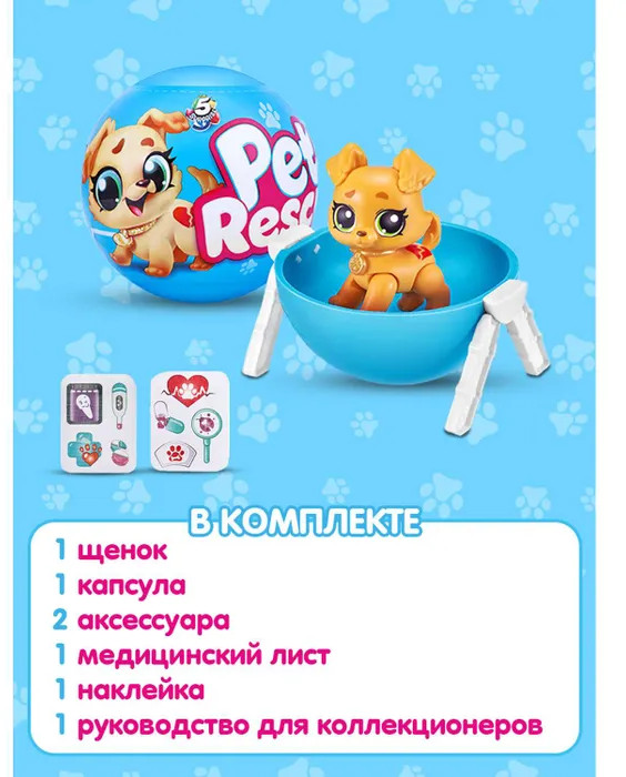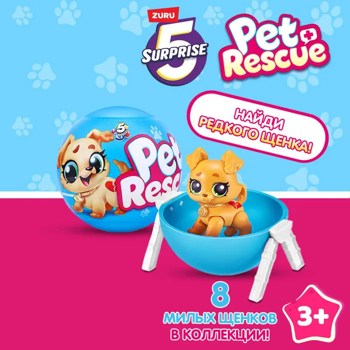 Игрушка Zuru 5 surprise Pet rescue Шар в непрозрачной упаковке (сюрприз). В новой серии шаров-сюрпризов Zuru 5 Surprise вас ждёт новорождённый единорожка и всё необходимое для его идеальной детской. Купайте малыша, укладывайте спать, кормите из волшебной бутылочки. Соберите полную коллекцию из братиков и сестричек, чтобы вместе вам было ещё веселее!