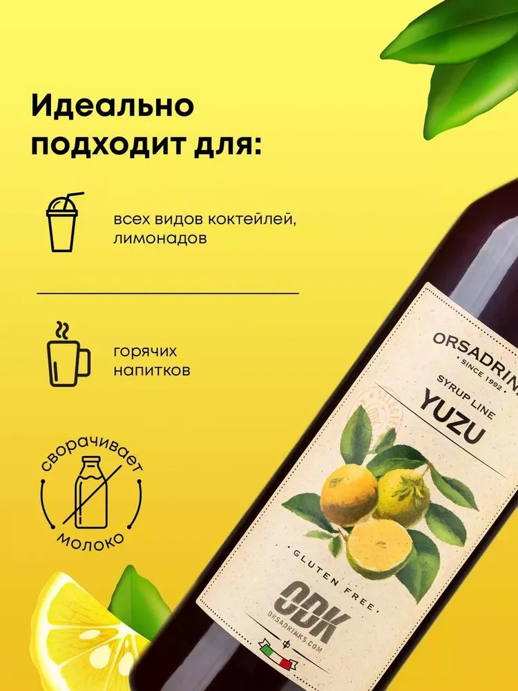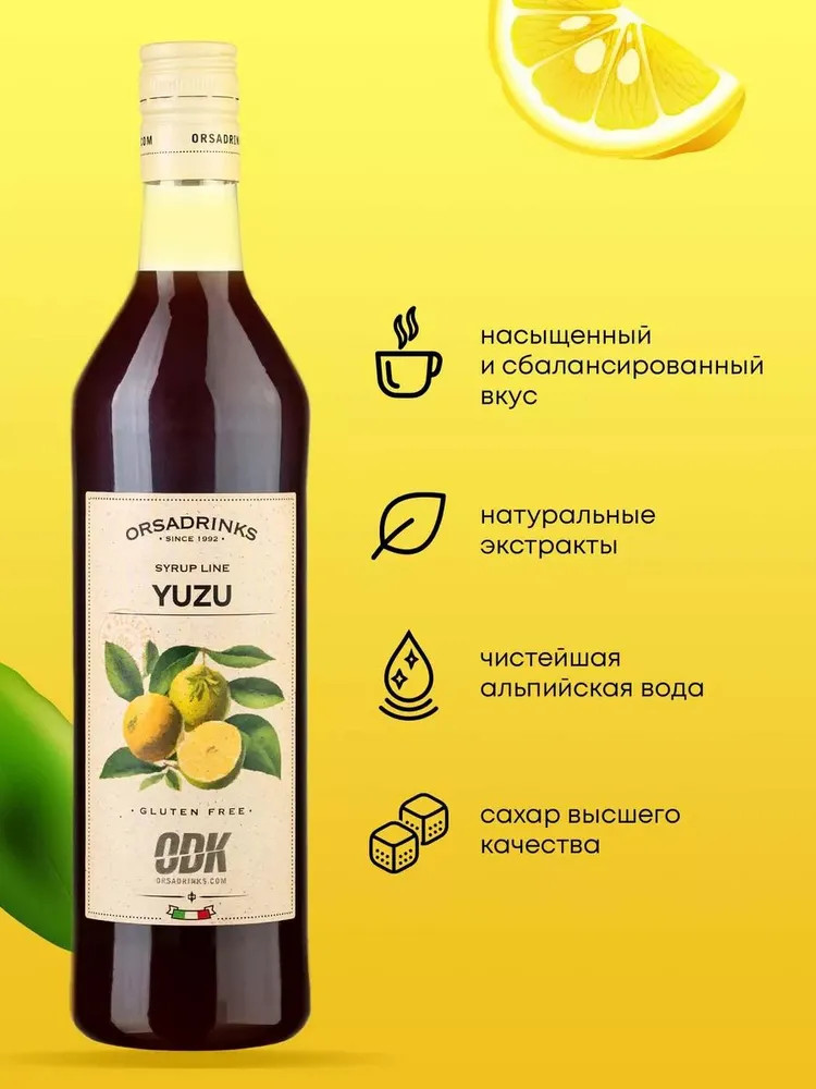 Сироп Юдзу это необычная добавка. Вкус японского цитруса не совсем похож на привычные нам цитрусовые фрукты. Он яркий, насыщенный и оригинальный. Представьте себе сочетание мандарина и лимона с дивным ароматом цитрусовой кожуры. Это и есть юдзу. Сахарный сироп имеет вкус сладкого мандарина, но нет приторности. Присутствует приятная освежающая кислинка, столь характерная для таких фруктов. Также в букете прослеживается легкая горечь грейпфрута, которая делает вкус благородным и незабываемым. Десерты, торты, коктейли и многое другое можно приготовить с добавлением этого топинга и сиропа.
