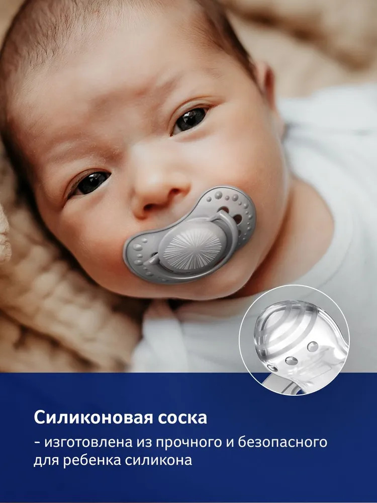 Изготовлены из гетерогенного силиконового слоя, который обеспечивает сжимание и расширение соски при сосательных движениях ребенка. Симметричная форма соски основана на структуре соска. Моделированная форма позволяет ребенку легко дышать через нос. Безопасные материалы не включают бисфенол А. Отверстия в нагубнике обеспечивают свободный поток воздуха и предохраняют кожу ребенка от раздражения.