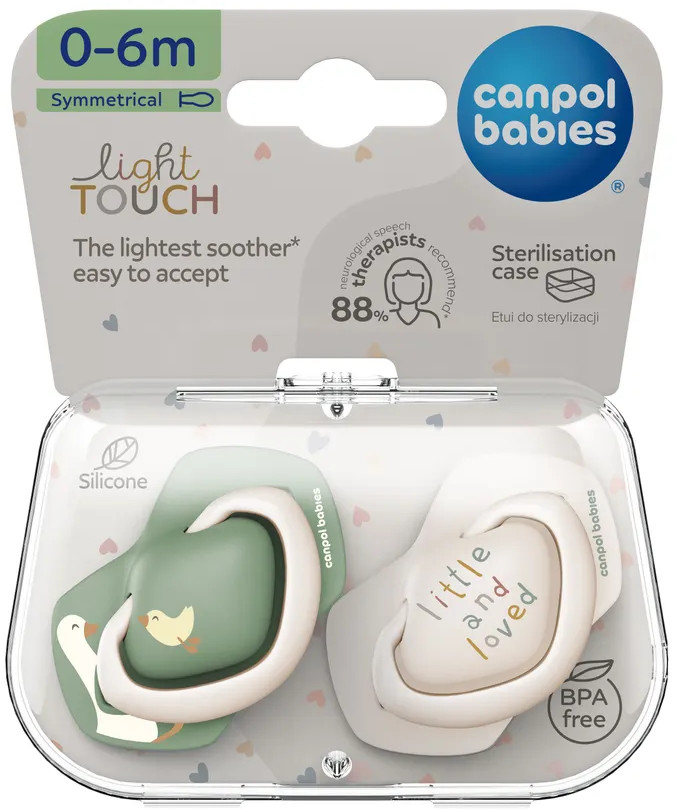 Соски-пустышки силиконовые для новорожденных 0-6 Canpol babies коллекции Goose были созданы для обеспечения максимального комфорта малышам. Исключительно мягкий силикон требует меньше усилий при сосании. Вентилируемое основание не допускает раздражений на нежной коже детей. По мнению 93% неврологических логопедов, принявших участие в исследовании компании Canpol в 2020 году, легкое профилированное основание сосок имеет важное значение для правильного развития полости рта ребенка. Не отягощает прикус и гарантирует легкое дыхание.