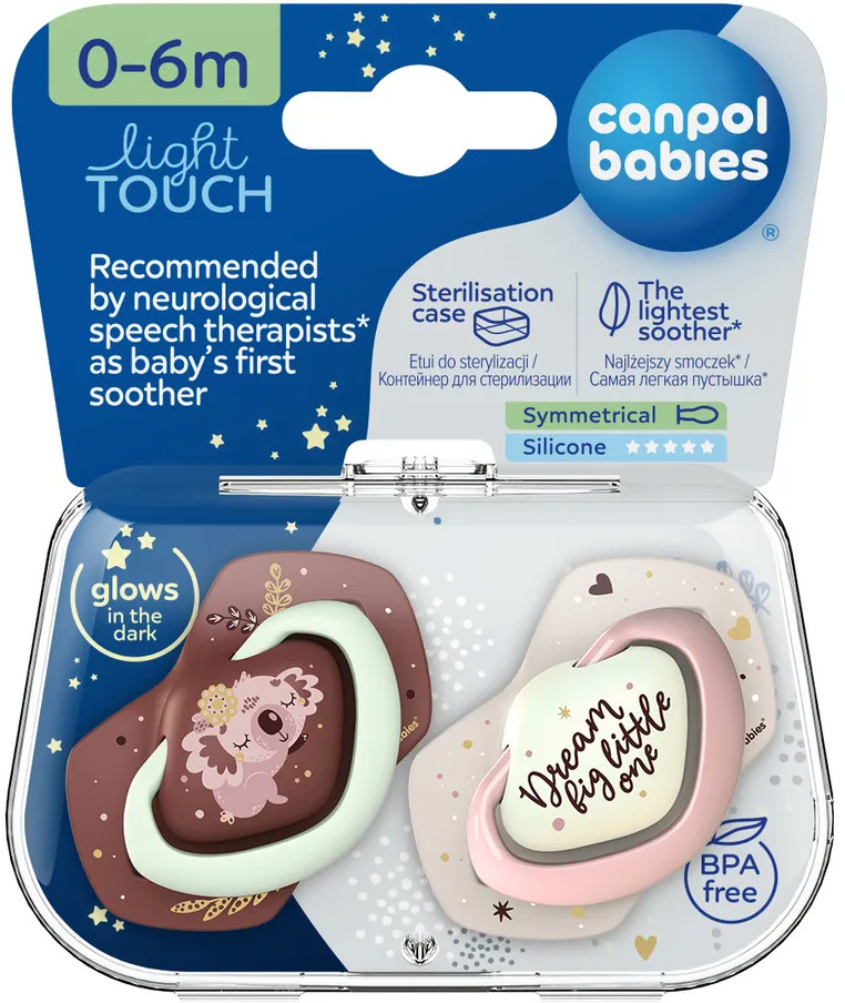 Canpol Babies Набор сосок-пустышек симметричных, светящихся в темноте, с футляром для хранения и стерилизации