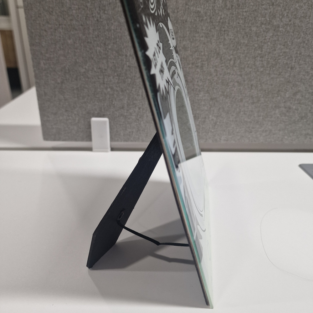 Что-то несуразное на подставке. Большая настольная а-ля "картина" с маленьким зеркальным окошком посередине. В это окошко лицо не помещается. А огромное по сравнению с самим зеркалом обрамление закрывает свет от лица.