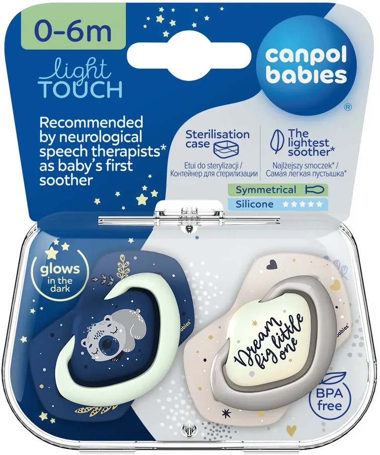 Canpol Babies Набор сосок-пустышек симметричных, светящихся в темноте, с футляром для хранения и стерилизации