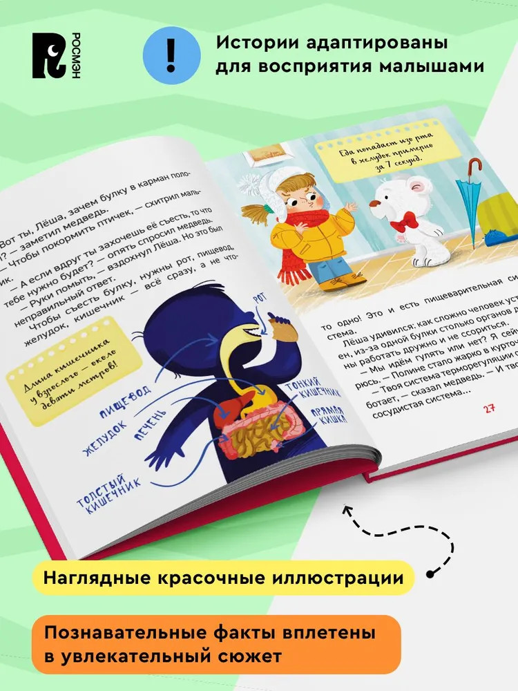💳 Оплатить за товар можно при получении 🇰🇿 Есть бесплатная доставка по Казахстану от 1 дня 🎁 Копите бонусы с каждой покупки Серия: Энциклопедия для детского сада Красочно иллюстрированная детская энциклопедия расскажет ребенку, как устроен его организм, как нужно заботиться о своем здоровье и какими полезными привычками нужно обзавестись, чтобы быть здоровым. Все научные сведения о теле человека представлены в понятном ребенку формате — в виде увлекательной сказки! Волшебные истории из книги «Как устроен человек? Энциклопедия для детского сада» расскажут мальчикам и девочкам: |