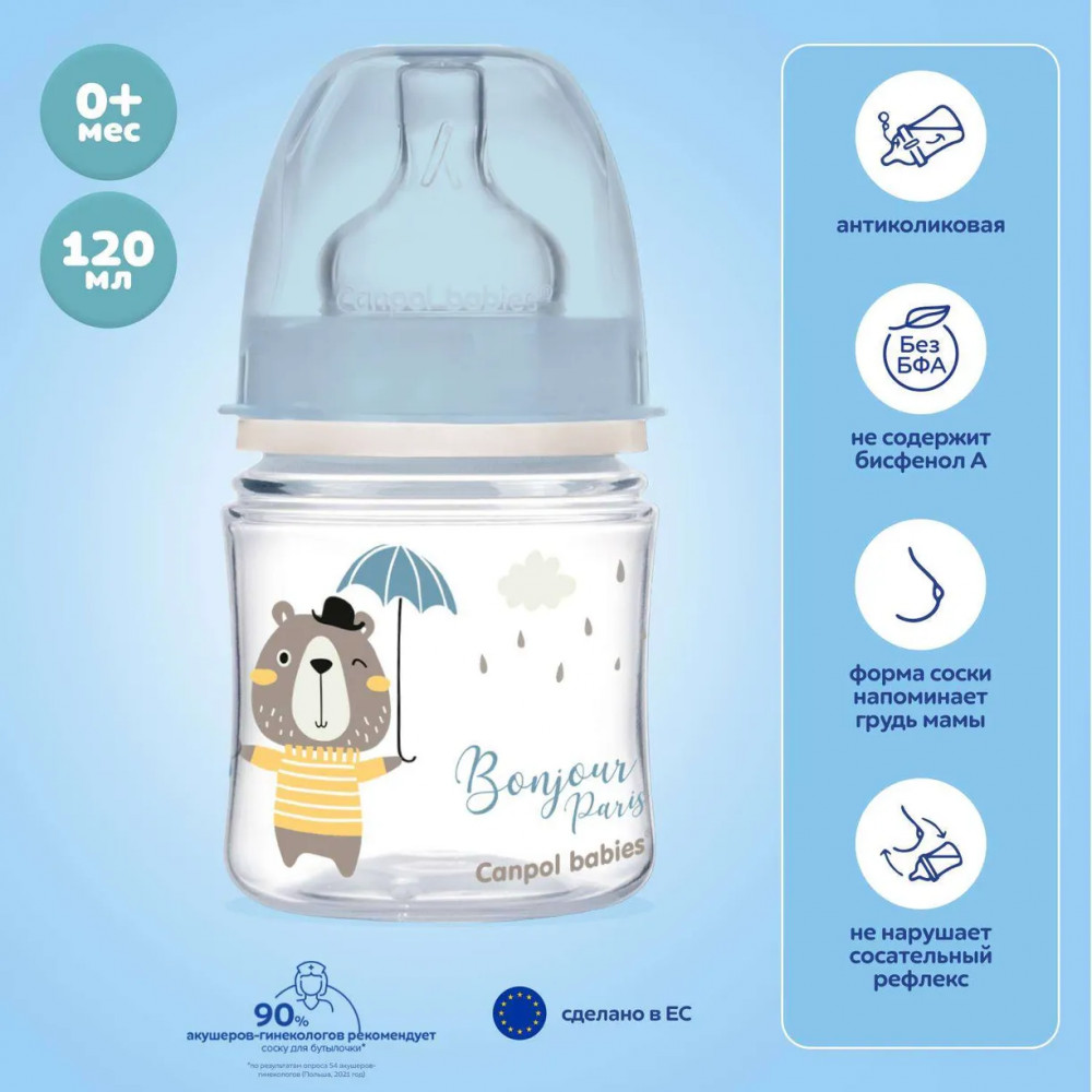 Canpol Babies Бутылочка для кормления малышей антиколиковая с широким горлышком «Easy Start»