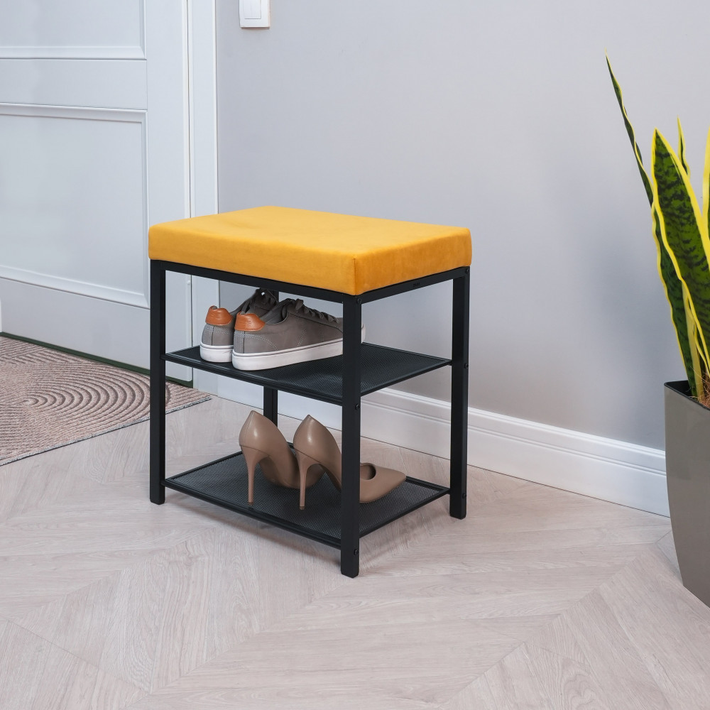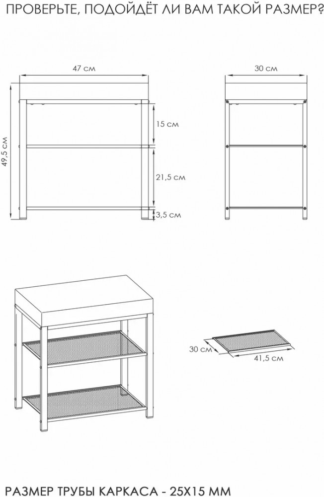 Обувница — банкетка «Торонто 13C» от российской торговой марки ЗМИ — это отличный способ грамотной организации системы хранения ваших туфелек, ботинок или кроссовок! Напольное изделие компактного размера представляет собой каркас и полки из металла (сталь) и мягкое сидение из рогожки с наполнителем — поролоном. Металлические детали этажерки покрыты порошковой краской, которая образует при затвердевании непроницаемую полимерную пленку, препятствующую коррозии. Прочная банкетка имеет два яруса с горизонтальными сетчатыми полками, отверстия которых позволяют воздуху свободно циркулировать. На ровных «дышащих» поверхностях решетки удобно размещать любую невысокую обувь (вмещается до 4 пар). Одна полочка выдерживает 8 кг нагрузки. Мягкое сидение позволяет с комфортом разместиться во время снятия или надевания обуви, способно выдержать до 120 кг веса. Металлические ножки обувницы оснащены заглушками из пластика для защиты напольного покрытия от царапин. Благодаря лаконичному дизайну и чистым линиям этот предмет мебели будет прекрасно смотреться в любой комнате. В ассортименте компании — стеллажи черного, молочно-белого и цвета графита (серый). Двухъярусное изделие выполнено в стиле лофт и прекрасно подойдет к дизайну вашего дома или квартиры, универсальная обувница станет функциональным элементом и украшением интерьера.