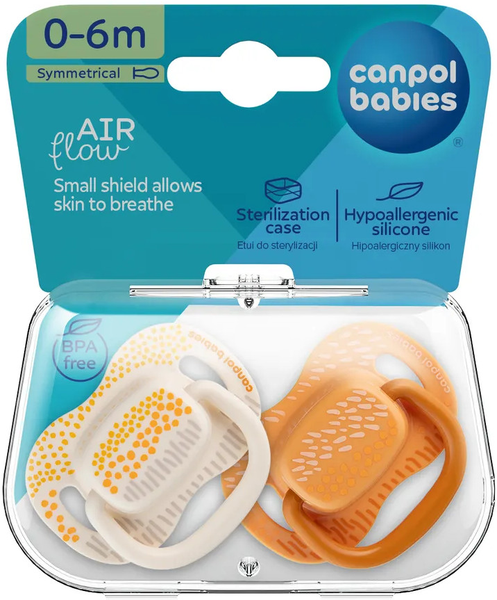 Canpol Babies Набор сосок-пустышек симметричных с футляром для хранения и стерилизации «Air flow»