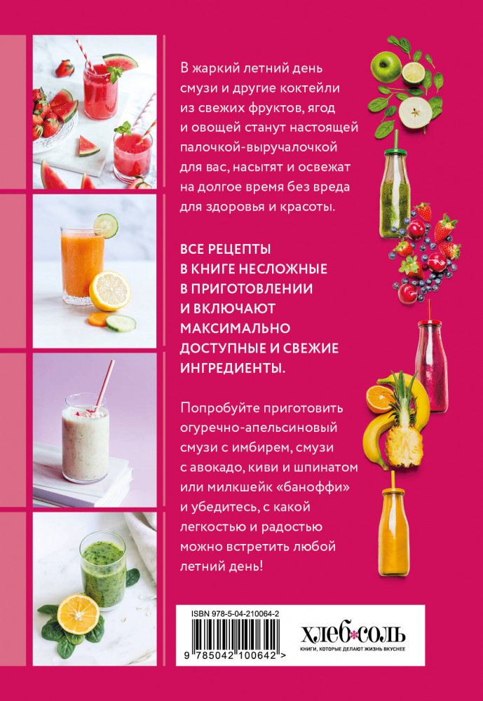 💳 Оплатить за товар можно при получении 🇰🇿 Есть бесплатная доставка по Казахстану 🎁 Копите бонусы с каждой покупки Серия: Кулинария. Сборник лучших рецептов Лето — это время солнца, тепла и, конечно же, свежих фруктов и овощей. Как сохранить заряд бодрости и энергии в жаркие дни, не перегружая организм тяжелой пищей? Ответ прост — смузи! Эта книга — ваш гид в мир летних смузи, полных витаминов, клетчатки и обладающих неповторимым вкусом. Забудьте о скучных перекусах и утомительных диетах! Смузи — это идеальный способ наслаждаться дарами лета, поддерживать здоровый образ жизни и экспериментировать с новыми сочетаниями. Берите любимые ингредиенты, смешивайте по своему вкусу и наслаждайтесь каждым глотком этого полезного и вкусного напитка! Пусть лето будет наполнено яркими красками, свежими ароматами и зарядом энергии, который подарят вам смузи! |