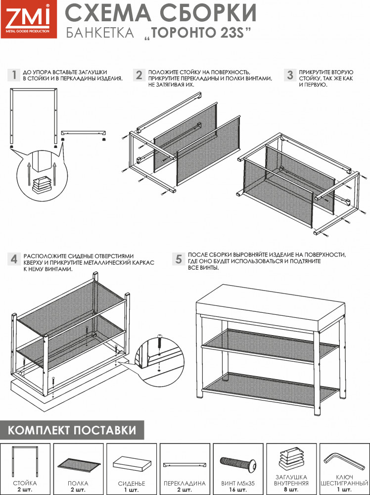 Обувница — банкетка «Торонто 23S» от российской торговой марки ЗМИ — это отличный способ грамотной организации системы хранения ваших туфелек, ботинок или кроссовок! Напольное изделие компактного размера представляет собой каркас и полки из металла (сталь) и мягкое сидение из рогожки с наполнителем — поролоном. Металлические детали этажерки покрыты порошковой краской, которая образует при затвердевании непроницаемую полимерную пленку, препятствующую коррозии. Прочная банкетка имеет два яруса с горизонтальными «сетчатыми» полками, отверстия которых позволяют воздуху свободно циркулировать. На ровных «дышащих» поверхностях решетки удобно размещать любую невысокую обувь (вмещается до 6 пар). Одна полочка выдерживает 8 кг нагрузки. Мягкое сидение позволяет с комфортом разместиться во время снятия или надевания обуви, способно выдержать до 120 кг веса. Металлические ножки обувницы оснащены заглушками из пластика для защиты напольного покрытия от царапин. Благодаря лаконичному дизайну и чистым линиям этот предмет мебели будет прекрасно смотреться в любой комнате. В ассортименте компании — стеллажи черного, молочно-белого и цвета графита (серый). Двухъярусное изделие выполнено в стиле лофт и прекрасно подойдет к дизайну вашего дома или квартиры, универсальная обувница станет функциональным элементом и украшением интерьера.