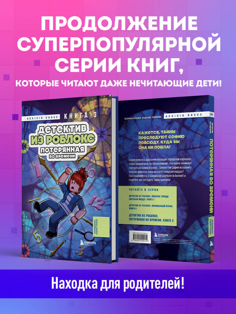 💳 Оплатить за товар можно при получении 🇰🇿 Есть бесплатная доставка по Казахстану от 1 дня 🎁 Копите бонусы с каждой покупки Серия: Роблокс. Дневник детектива Кажется, тайны преследуют Софию повсюду, куда бы она ни пошла! София вместе с друзьями посещает городской карнавал, чтобы развлечься, но обнаруживает, что время начинает повторяться снова и снова... Сможет ли София исправить течение времени, пока не стало слишком поздно? Присоединяйтесь к Софии и ее друзьям (и Билли!) и помогите им разгадать тайну времени! |