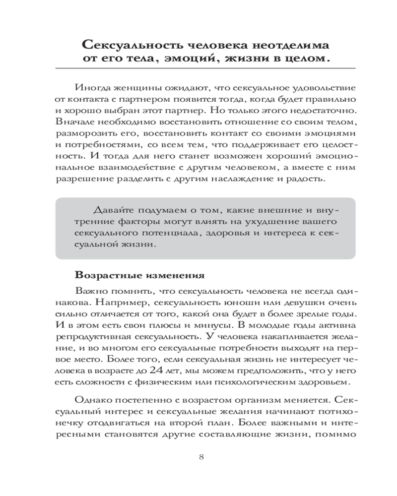 💳 Оплатить за товар можно при получении 🇰🇿 Есть бесплатная доставка по Казахстану от 1 дня 🎁 Копите бонусы с каждой покупки Серия: Сексуальность без границ. Практики для обретения баланса между телом, разумом и эмоциями Сексуальность — неотъемлемая часть нашей жизни, заслуживающая уважения, внимания и исследования. Но о сексуальности не принято говорить вслух. Этот откровенный и вдохновляющий дневник, в котором ты исследуешь свою сексуальность, преодолевая внутренние барьеры, страхи и общественные стереотипы, поможет тебе понять себя. Он создан специально для тех, кто стремится избавиться от сковывающего стыда и хочет обрести внутреннюю свободу и гармонию. В этом дневнике ты не найдешь никаких советов о том, как стать прекрасной, сексуально привлекательной «светской львицей», женщиной, к ногам которой ложатся мужчины. В этом дневнике ты сможешь обратиться внутрь себя и исследовать, как формировалась твоя сексуальность. Он поможет тебе изменить те негативные представления и установки, которые мешают твоему телу раскрепоститься, получать удовольствие от себя и от контакта с другим человеком, находиться в близких и сексуально удовлетворительных отношениях с партнером. |