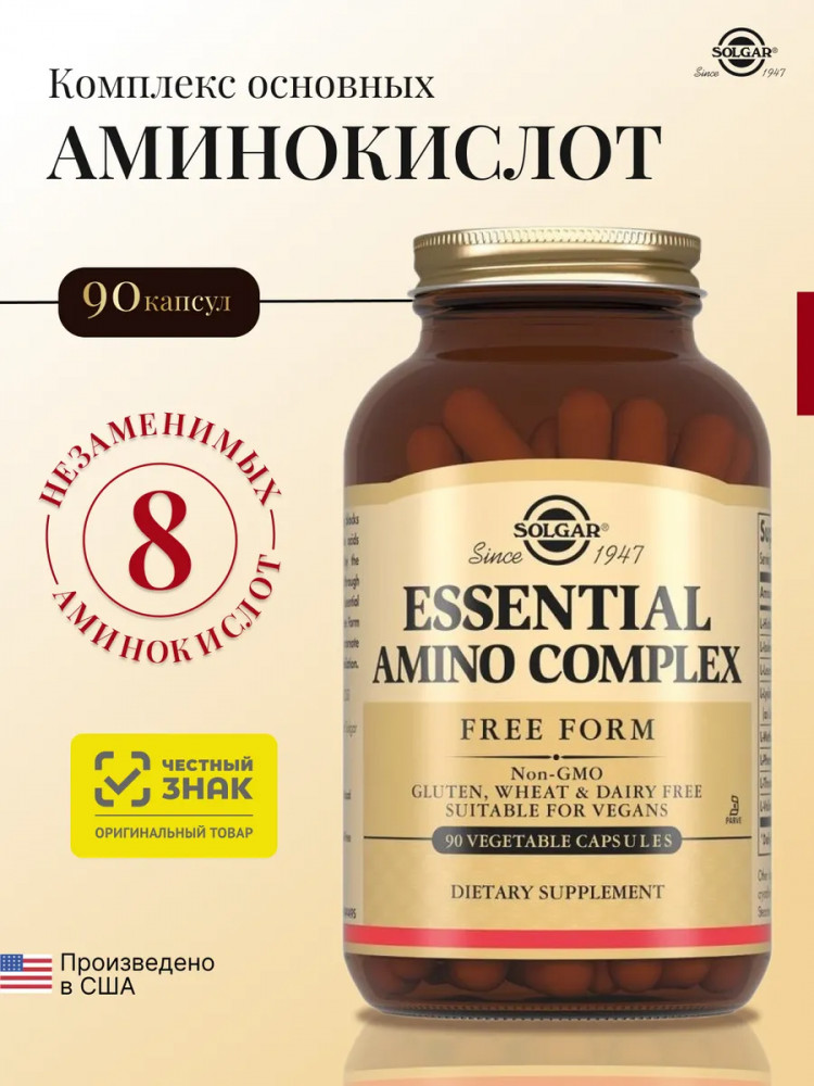 Показания: капсулы «Комплекс основных аминокислот» рекомендуются в качестве дополнительного источника аминокислот. Комплекс содержит 8 незаменимых аминокислот, которые участвуют в процессе образования белка — главного строительного элемента организма, в том числе коллагена и эластина, способствующих восстановлению кожи и костной ткани. Аминокислоты находятся в свободной L-форме, что обеспечивает их максимально быстрое и эффективное усвоение. Продукт производится без добавления соли, сахара, глютена и потенциальных аллергенов.