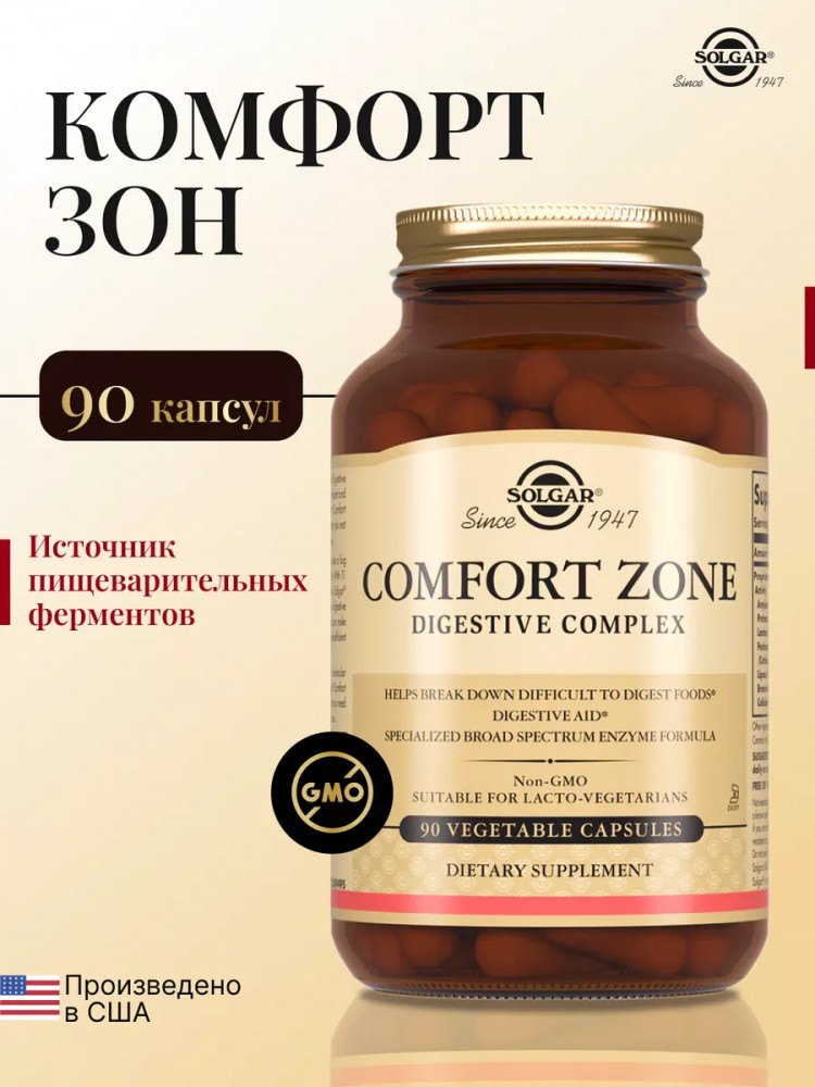 Получайте удовольствие от любимых блюд, не испытывая симптомы недостаточного пищеварения благодаря многокомпонентному сбалансированному составу "Комфорт Зон".