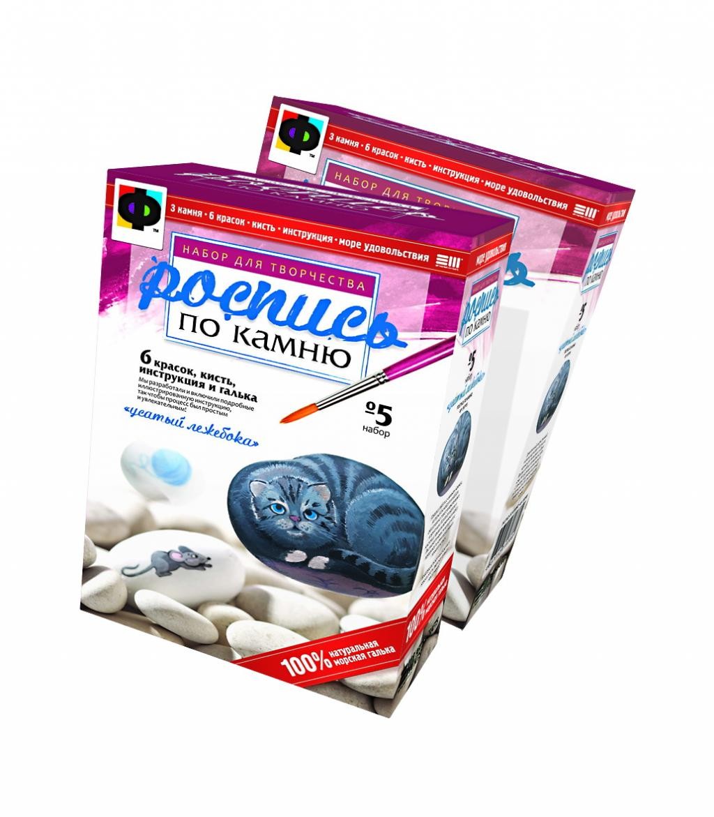 В набор входит: 3 камня (натуральная морская галька), 6 красок, кисть, инструкция. |