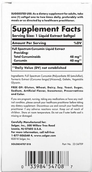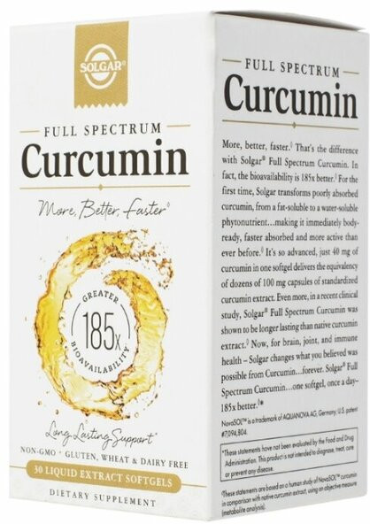 Solgar Капсулы «Curcumin. Куркумин»В данный момент этот товар отсутствует в продаже. Возможно, у нас найдется аналогичный или похожий товар здесь. Куркумин благоприятно влияет на работу всего организма, в том числе способствует здоровой работе суставов, помогает защитить сердце, повышает сопротивляемость организма к инфекциям. Капсулы «Куркумин» обладают неоспоримым преимуществом по сравнению с традиционными препаратами куркумы, поскольку производятся по запатентованной технологии Novasol™, которая позволяет повысить биодоступность Куркумина в 185 раз по сравнению с порошком куркумы. Мицеллы малого размера 30 нм, устойчивы в кислой среде желудка, а амфифильные свойства мицеллярной формы обеспечивают увеличение биодоступности Куркумина. |