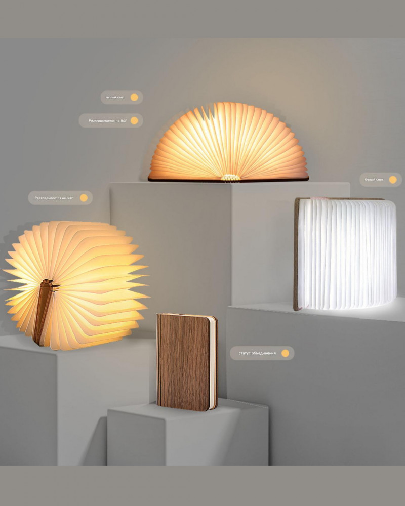 Ночник декоративный «Книга»В данный момент этот товар отсутствует в продаже. Возможно, у нас найдется аналогичный или похожий товар здесь. Уникальный ночник-книга, который раскладывается на 360 градусов и излучает мягкий теплый или белый свет. Обложка из белого клена, страницы в технике оригами. Просто откройте книгу, чтобы включить ее, и закройте, чтобы выключить. Каждая страница изготовлена из бумаги Dupont, которая позволяет светодиодному свету излучать приятное свечение, делая любую комнату уютной и гостеприимной. |