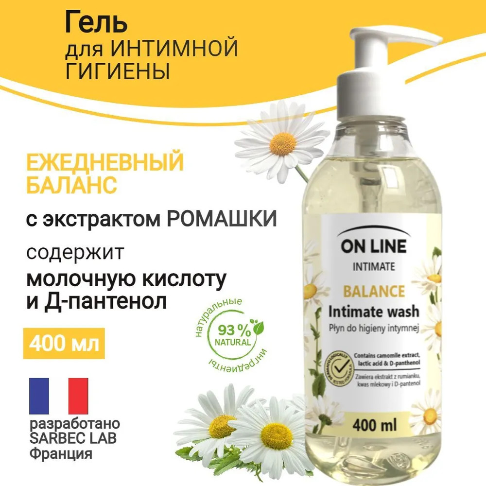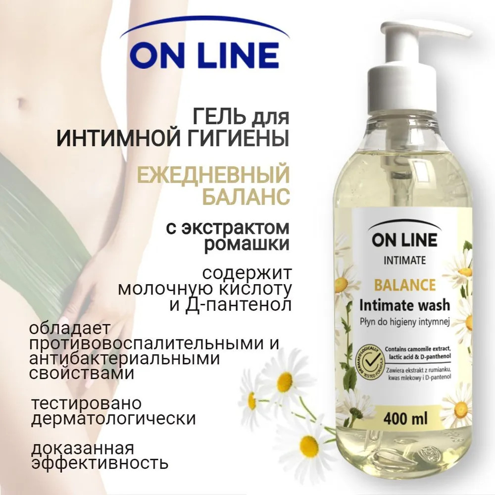 On Line Гель для интимной гигиены с молочной кислотой, Д-пантенолом и экстрактом ромашки «Balance»
