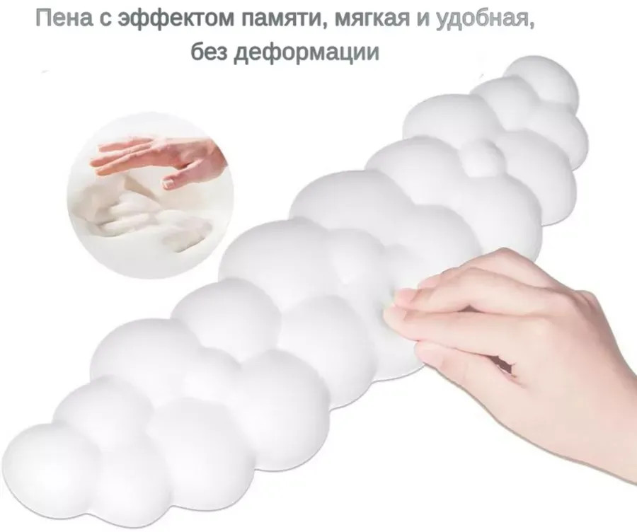 Подушка для запястий выполнена в форме облаков сахарной ваты разных цветов, что делает ее стильной и сочетаемой с различными стилями рабочего пространства. Она придаст вашему рабочему процессу комфортную и модную нотку.