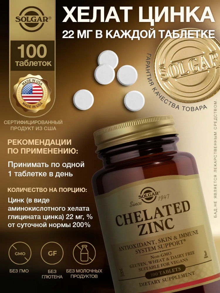 Solgar Таблетки «Chelated Zinc. Хелат цинка»В данный момент этот товар отсутствует в продаже. Возможно, у нас найдется аналогичный или похожий товар здесь. Цинк выполняет в организме множество различных функций. В частности, цинк регулирует работу сальных желез, что важно для людей с проблемной и жирной кожей. Недостаток цинка может быть причиной угревой сыпи (акне) у подростков. Дополнительный прием цинка может помочь избавиться даже от застарелых угрей, упорно не поддающихся лечению. Также цинк играет важнейшую роль в процессах регенерации кожи, волос, ногтей. Он способствует всасыванию витамина Е и поддержанию его нормальной концентрации в крови. Цинк улучшает структуру волос и предотвращает их выпадение. |