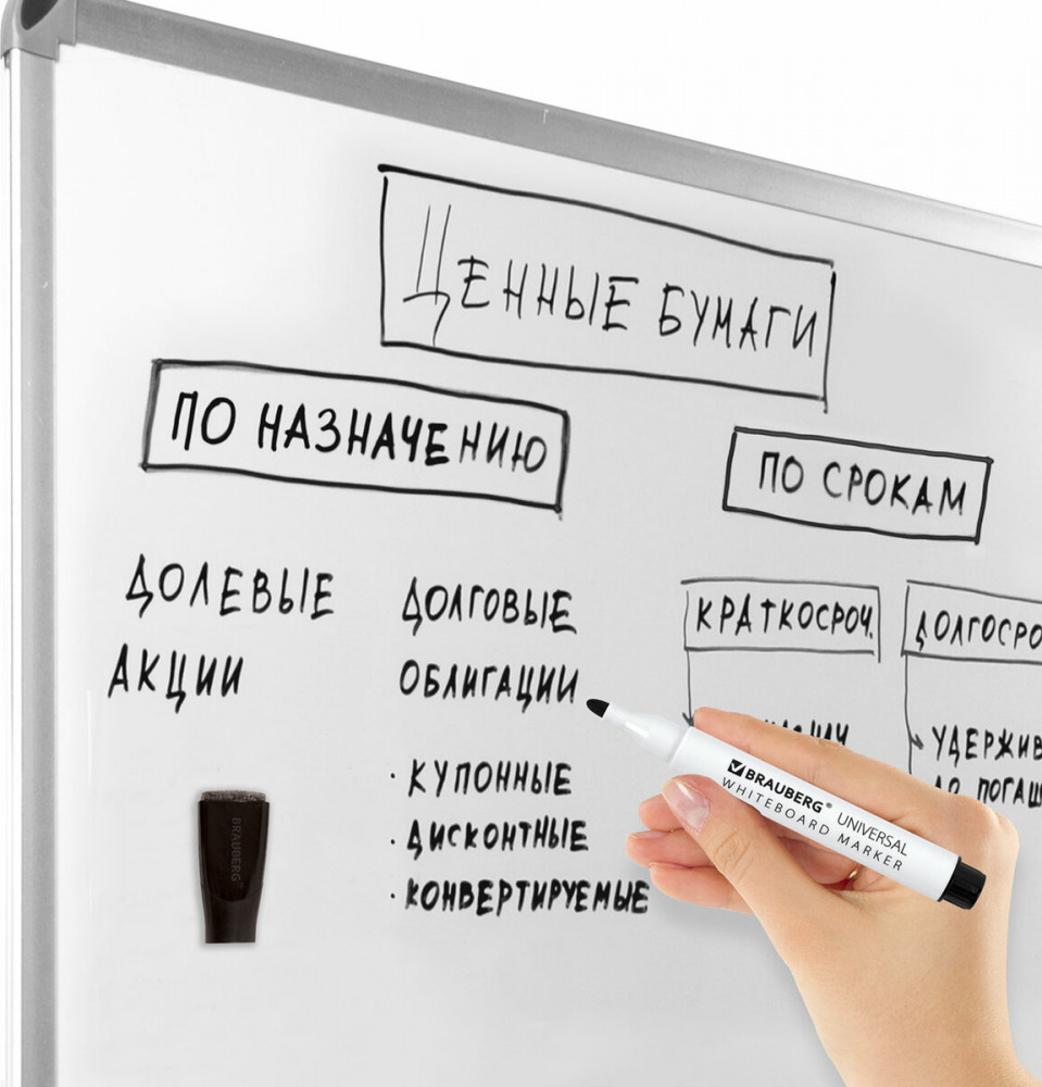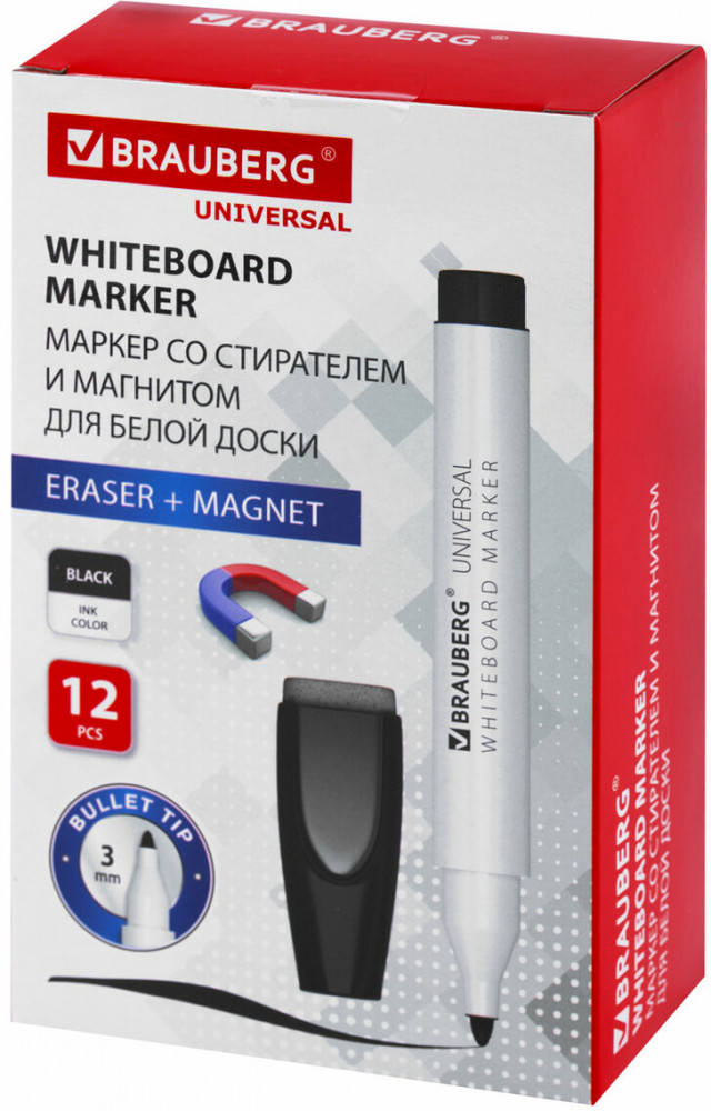 💳 Оплатить за товар можно при получении 🇰🇿 Есть бесплатная доставка по Казахстану от 1 дня 🎁 Копите бонусы с каждой покупки Серия: Universal Маркер на магните со стирателем Brauberg «Universal» предназначен для использования на белых досках с магнитно-маркерной поверхностью. Идеально подходит для проведения презентаций, совещаний, уроков. Маркер стираемый на магните со стирателем для белой доски заправлен чернилами черного цвета. Колпачок маркера оснащен магнитом для крепления к любой металлической поверхности и губкой для быстрой корректировки текста во время написания. |