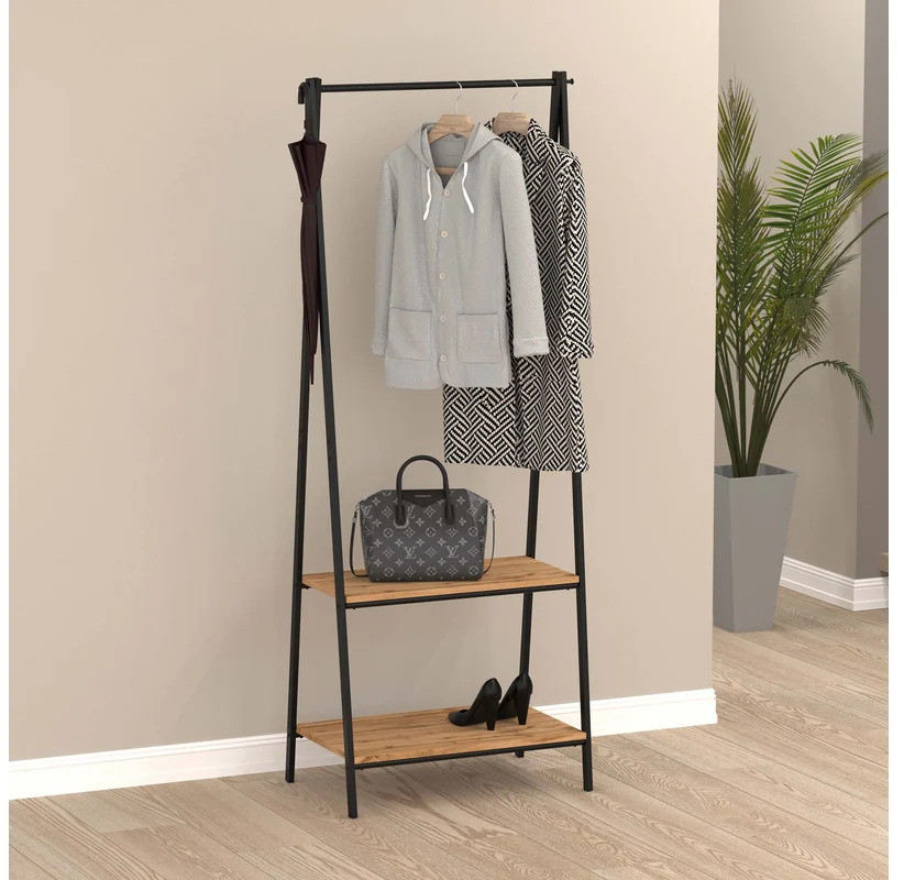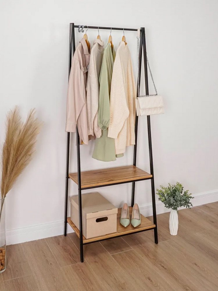 Металлическая гардеробная вешалка российского производства идеальна для открытого хранения верхней, повседневной одежды и обуви. Такая прочная, надежная система хранения вещей может использоваться для организации пространства в коридоре, прихожей, спальне, гардеробе, детской комнате, лоджии, гостиной, школьной раздевалке, примерочной. Надежная перекладина способна выдержать нагрузку до 20 кг и вместить более 10 плечиков. В нижней части предусмотрены деревянные полки из ЛДСП, на которых легко удастся разместить коробки и обувь (до шести пар). Данный органайзер способен выступить практичной стойкой для отпаривания. Он поставляется в цветной картонной коробке. За счет этого его без труда удастся донести домой от пункта выдачи и поместить в багажник машины. Кроме того, в такой упаковке изделие может выступить в качестве практичного подарка. Железная сборная конструкция позволяет компактно разместить жакеты из костюмной ткани, женские платья, школьную форму, повседневные наряды школьника. На ней без труда найдется место для рубашек, зонтиков, тапочек, кроссовок, вещей всех членов семьи. Двухъярусный стильный рейлинг легко передвигать и удобно использовать. Он обладает оптимальной шириной и высотой, способствует созданию уютной домашней, дачной и офисной обстановки.