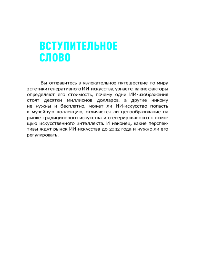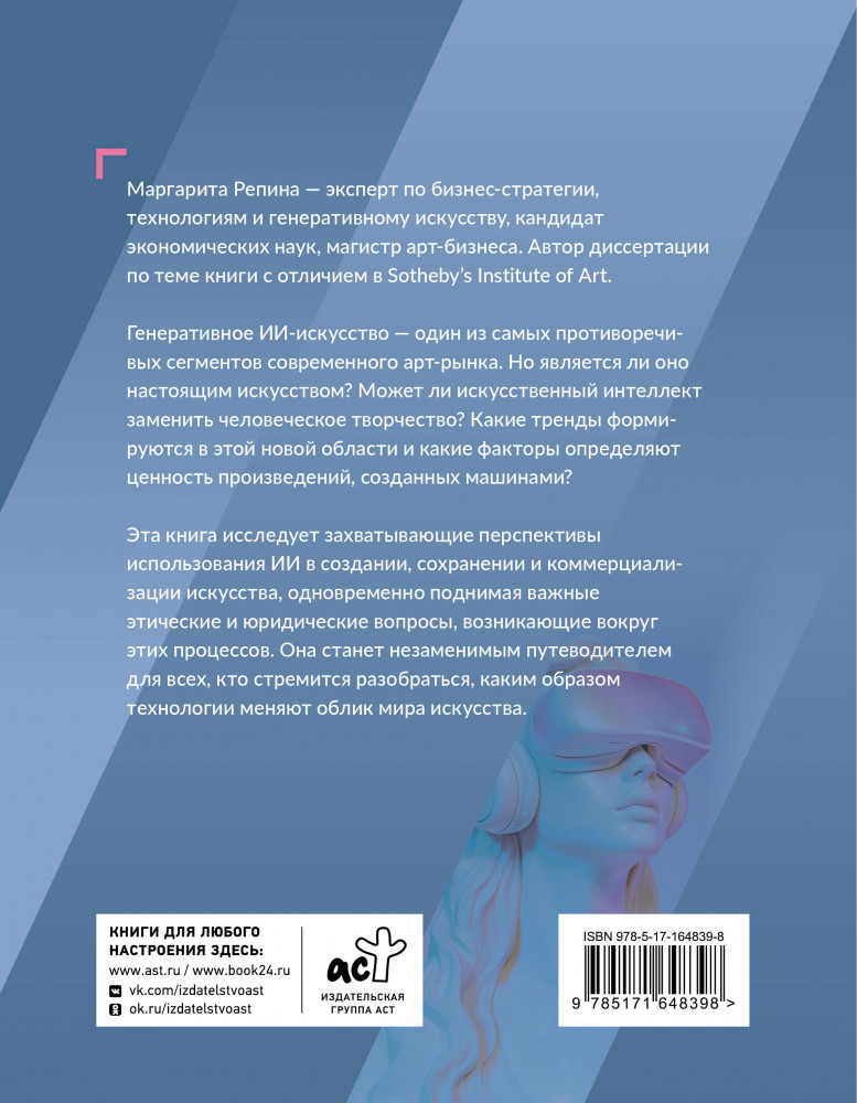 💳 Оплатить за товар можно при получении 🇰🇿 Есть бесплатная доставка по Казахстану от 1 дня 🎁 Копите бонусы с каждой покупки Серия: пАРТер. Лекции Генеративное ИИ-искусство — один из самых противоречивых сегментов современного арт-рынка. Но является ли оно настоящим искусством? Может ли искусственный интеллект заменить человеческое творчество? Какие тренды формируются в этой новой области и какие факторы определяют ценность произведений, созданных машинами? Эта книга исследует захватывающие перспективы использования ИИ в создании, сохранении и коммерциализации искусства, одновременно поднимая важные этические и юридические вопросы, возникающие вокруг этих процессов. Она станет незаменимым путеводителем для всех, кто стремится разобраться, каким образом технологии меняют облик мира искусства. |