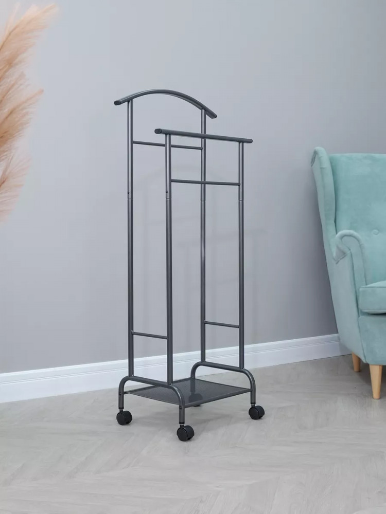 Модель имеет удобную высоту и широкую конструкцию, которая позволяет хранить различные типы одежды — от формы школьника — мальчика или девочки и взрослых мужских и женских пиджаков до джинсов и рубашек. Она также оснащена рейлом для вещей который позволяет сэкономить пространство и облегчить процесс отпаривания и сушки. Вы сможете использовать ее вместо пластиковой сушилки для белья или подставки для отпаривания. Нижняя полка для обуви позволяет хранить не только обувь, но и коробки с различными вещами. Эта удачная комбинация классического и минималистичного дизайна, делает ее универсальной и подходящей для любой комнаты — будь то кабинет, спальня, гостиная или даже школьный класс. Кроме того, этот двухъярусный аксессуар для хранения и разделения одежды мобильный и вы сможете передвигать вешалку из комнаты в комнату за счет пластиковых колесиков. Эта стоячая вешалка — классика подарка для ваших близких на новоселье, годовщину свадьбы или день рождения. Она идеально подойдет как женщинам, так и мужчинам, а также для подростков и детей, которые любят модные и стильные вещи. Стильная и функциональная, она станет отличным подарком для вашей жены, дочери, сестры, брата, сына, дедушки или бабушки, а также другим членам семьи или друзьям. Эстетичная черная, серая и молочно-белая вешалка будет прекрасно смотреться в любом интерьере и поможет создать домашний уют. Купить вешалку «RIMINI 2M» — это удачная инвестиция в ваш гардероб и интерьер.