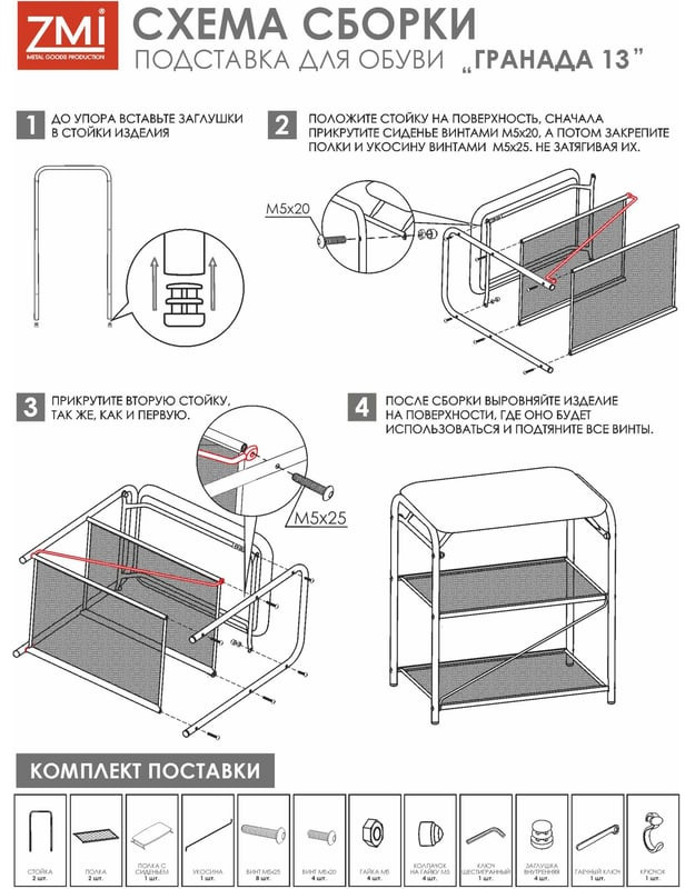 Сборка обувницы не вызовет сложностей благодаря подробной инструкции и комплекту инструментов. Картонная упаковка с удобной ручкой облегчает транспортировку, что делает её отличным подарком для тех, кто ценит порядок и удобство.