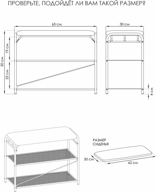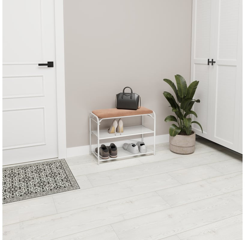 Стильная обувница «Гранада 23» с сиденьем — идеальный выбор для хранения обуви в доме или офисе. Долговечная конструкция из стали обеспечивает надёжность, а две полки вмещают до 6 пар обуви. Продуманные расстояния между полками позволяют разместить как летнюю, так и зимнюю обувь. Каждая полка выдерживает нагрузку до 8 кг. Сиденье банкетки изготовлено из стильной ткани «Нубук», а его максимальная нагрузка составляет до 120 кг. Сборка обувницы проста и понятна благодаря пошаговой инструкции и комплектующим инструментам. Картонная упаковка с удобной ручкой облегчает транспортировку и делает подставку прекрасным подарком для ценителей порядка и комфорта.
