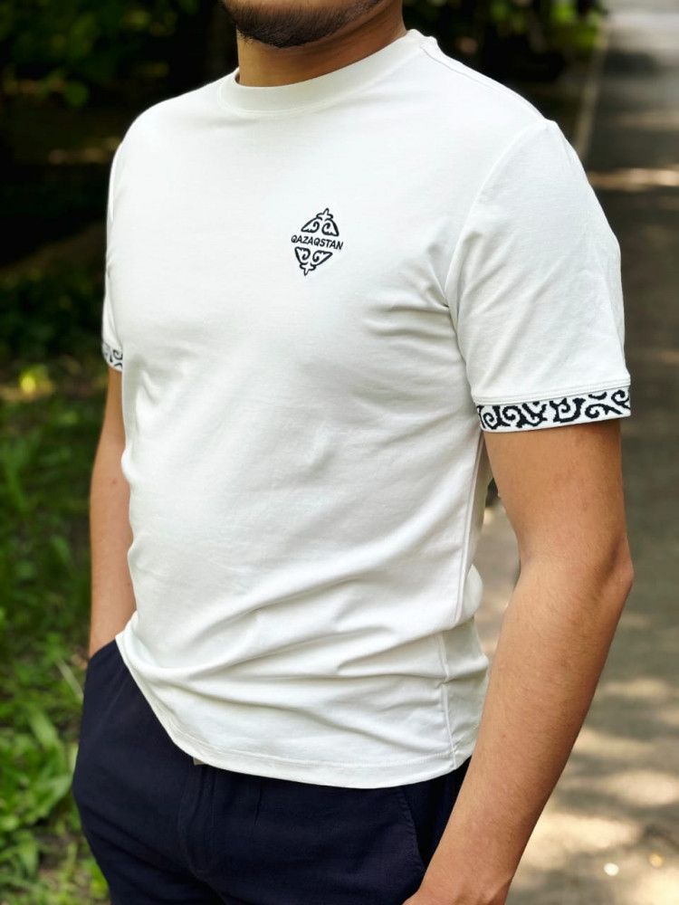 Футболка из 100% хлопка — идеальный выбор для повседневной носки, сочетающий комфорт, качество и национальный колорит. Мягкий, дышащий материал приятен к телу и обеспечивает удобство в течение всего дня. Элегантный казахский орнамент и стильная надпись «Казахстан» подчёркивают культурную идентичность и придают образу индивидуальность. Классический крой с коротким рукавом подойдёт для любого телосложения, не сковывает движения и отлично смотрится в любой обстановке — на прогулке, встрече или в путешествии. Эта футболка подойдёт тем, кто ценит удобство и стиль, любит национальные мотивы или ищет запоминающийся сувенир из Казахстана. Стильно. Надёжно. С душой!