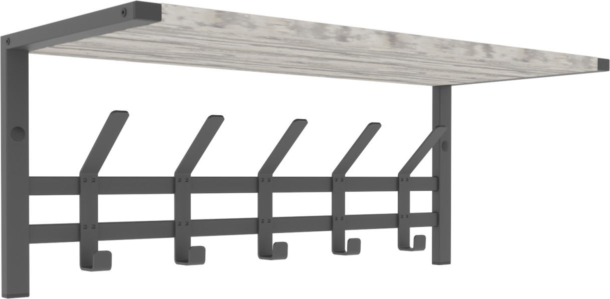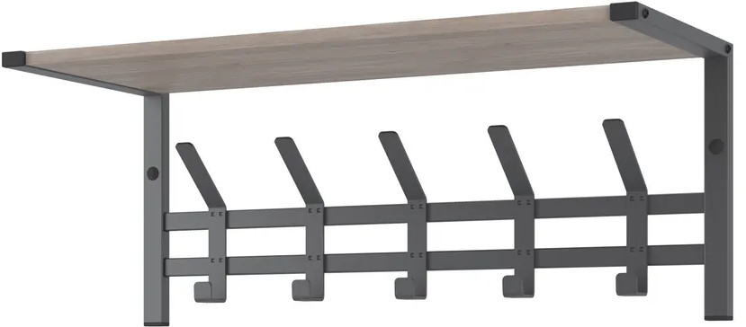 Настенная вешалка с полкой в стиле лофт Торонто 21Д — это идеальное решение для создания функционального пространства в вашей прихожей или гардеробной. Эта модель прекрасно впишется в любой интерьер в стиле лофт, добавляя нотку современности и оригинальности. Она обладает всеми необходимыми качествами для удобного хранения одежды и аксессуаров. На деревянной полке можно разместить головные уборы, шарфы или свои любимые предметы. Это удобное дополнение, которое поможет вам организовать пространство и добавить характер вашему интерьеру. 5 двойных стильных крючков позволят вам подвесить одежду, шапки или сумки, удобно расположив их для быстрого доступа.