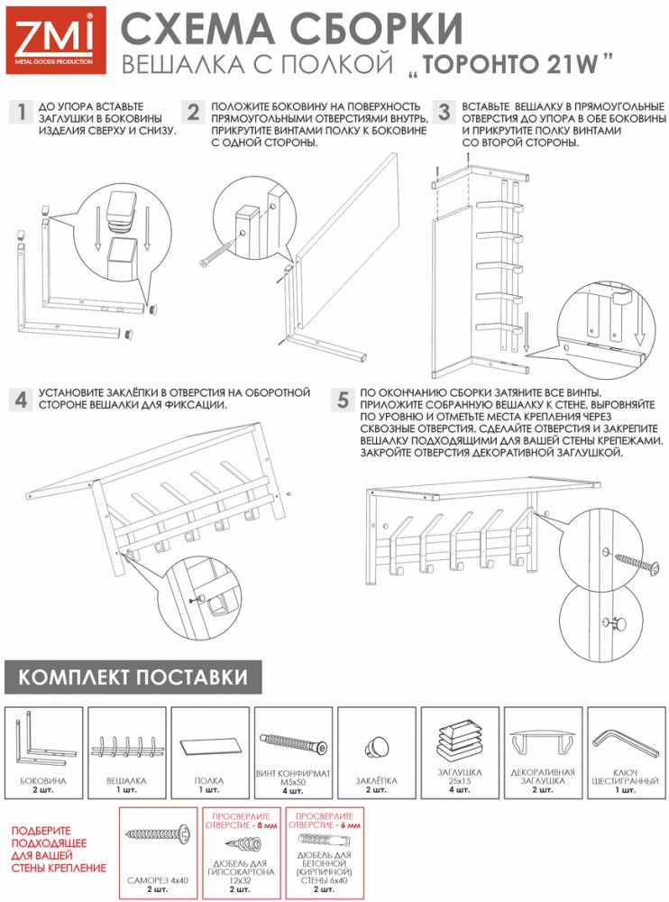 Каркас изготовлен из металлической трубы, что делает такую мебель долговечной и прочной, способной выдерживать значительную нагрузку. Настенная вешалка с полкой в стиле лофт Торонто 21Д идеально подходит для организации пространства в вашем коридоре или гардеробной. Изделие поставляется в разобранном виде в картонной коробке с ручкой, за которую удобно донести покупку с пункта выдачи до дома или вручить ее в качестве подарка. Сборка осуществляется по понятной схеме. Для этого в комплекте есть инструмент и вся необходимая фурнитура.