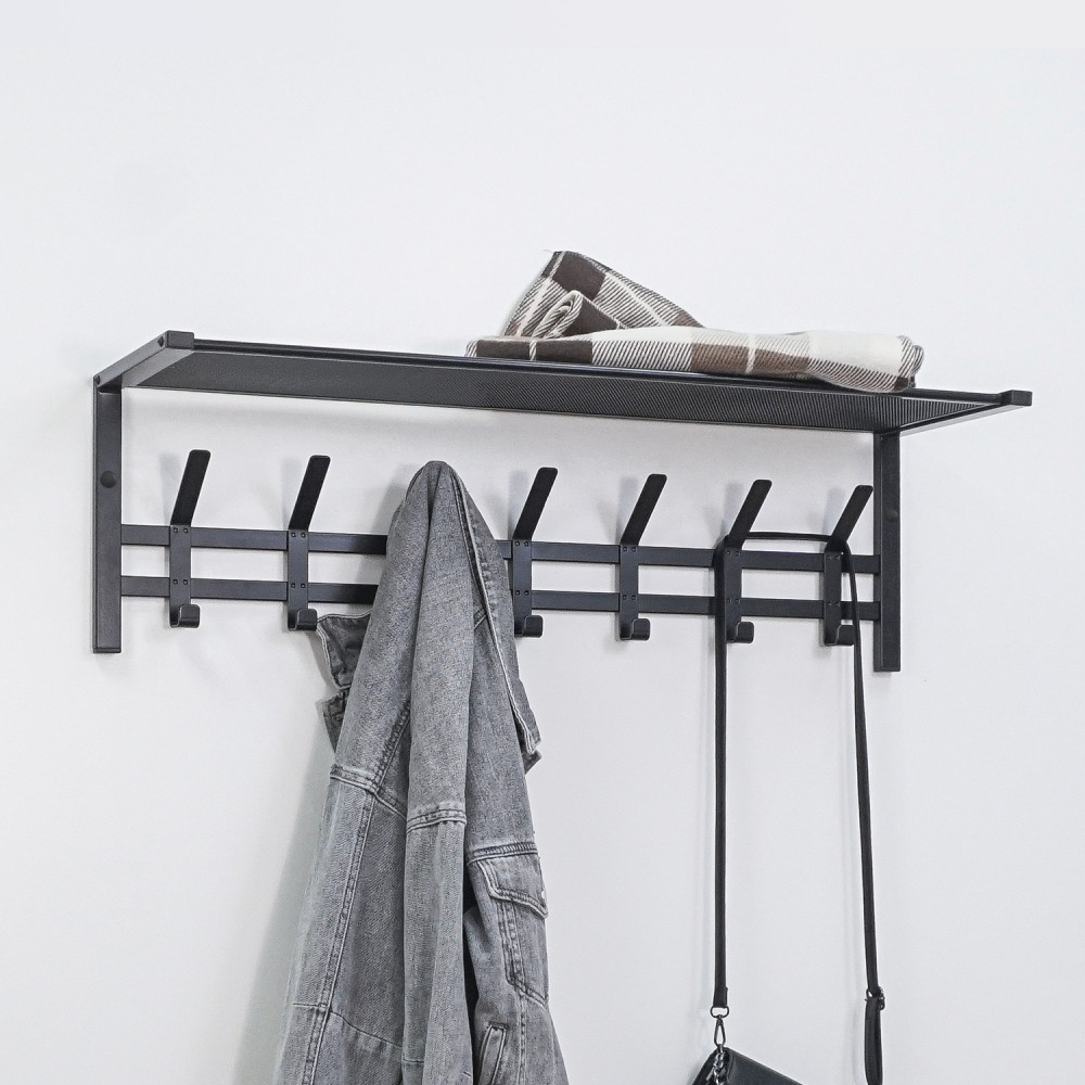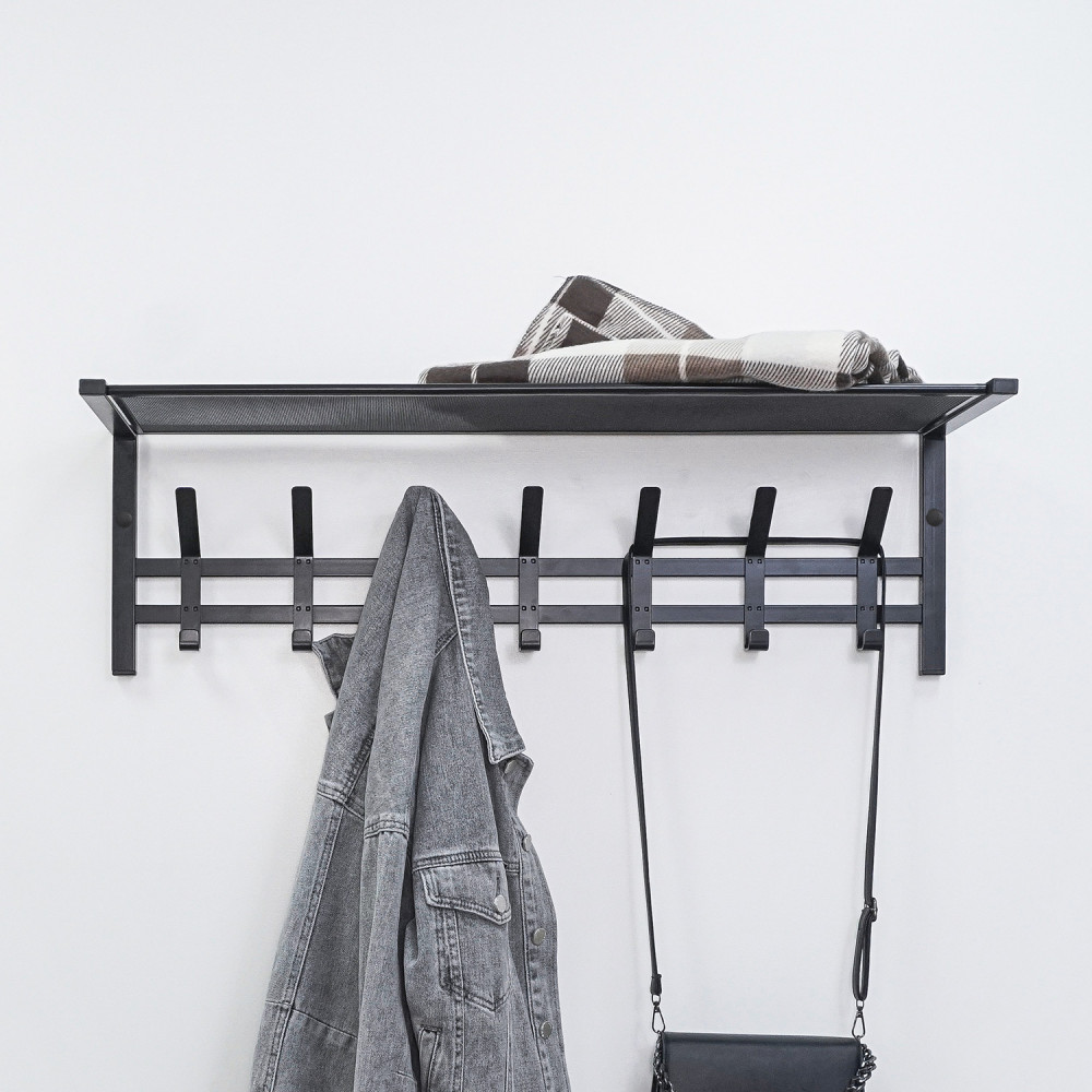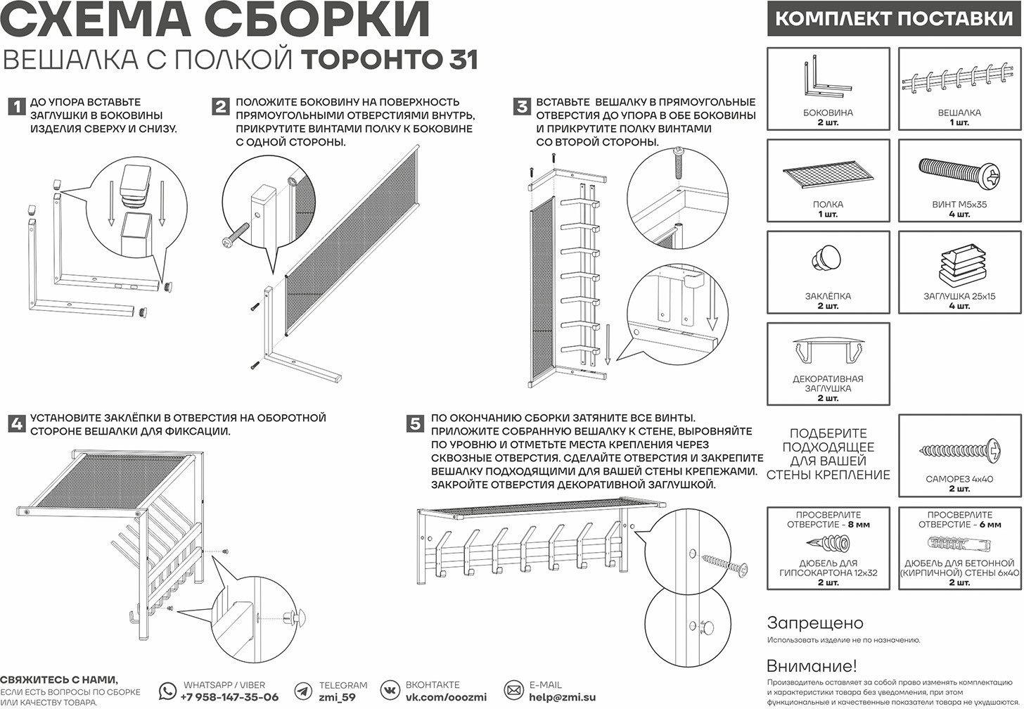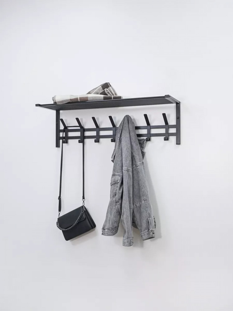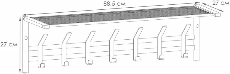 Настенная вешалка с полкой в стиле лофт «Торонто 31» от российского производителя «ЗМИ» создана для хранения верхней одежды в доме, офисе и на даче. Ее можно использовать практически в любом помещении: в коридоре, в ванной комнате, гардеробной, на кухне и даже в бане. Вешалка долго прослужит владельцу, благодаря материалу, из которого изготовлена — металл и полимерно-порошковое покрытие. Универсальная вешалка для хранения вещей имеет 7 двойных крючков — каждый из них выдерживает до 7 кг постоянной нагрузки. На них можно разместить как куртки, так и плечики с пальто или шубой. На полке можно разместить головные уборы, шарфы, полотенца или же повесить зонт. Вешалка в прихожую продается в разобранном виде в коробке с ручкой, что позволяет с удобством донести ее до дома с пункта выдачи. Вся фурнитура и инструмент для сборки в комплекте.