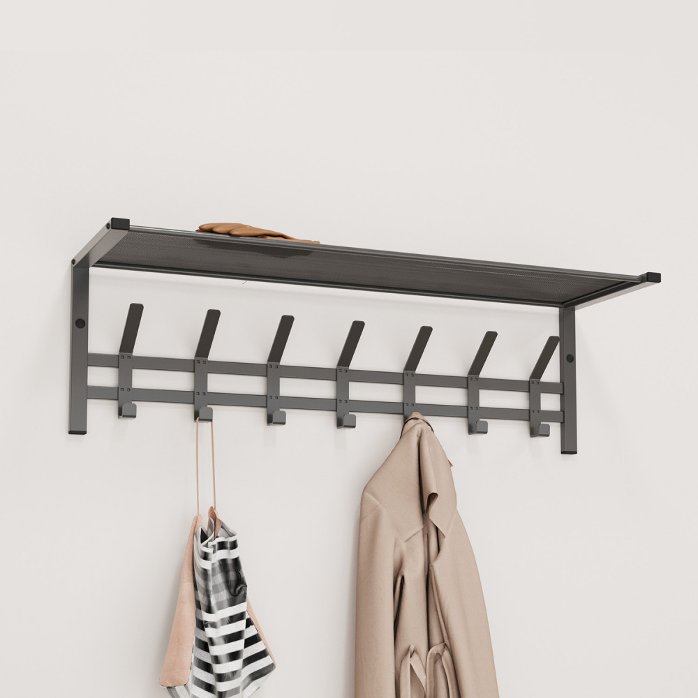Настенная вешалка с полкой в стиле лофт «Торонто 31» от российского производителя «ЗМИ» создана для хранения верхней одежды в доме, офисе и на даче. Ее можно использовать практически в любом помещении: в коридоре, в ванной комнате, гардеробной, на кухне и даже в бане. Вешалка долго прослужит владельцу, благодаря материалу, из которого изготовлена — металл и полимерно-порошковое покрытие. Универсальная вешалка для хранения вещей имеет 7 двойных крючков — каждый из них выдерживает до 7 кг постоянной нагрузки. На них можно разместить как куртки, так и плечики с пальто или шубой. На полке можно разместить головные уборы, шарфы, полотенца или же повесить зонт. Вешалка в прихожую продается в разобранном виде в коробке с ручкой, что позволяет с удобством донести ее до дома с пункта выдачи. Вся фурнитура и инструмент для сборки в комплекте.