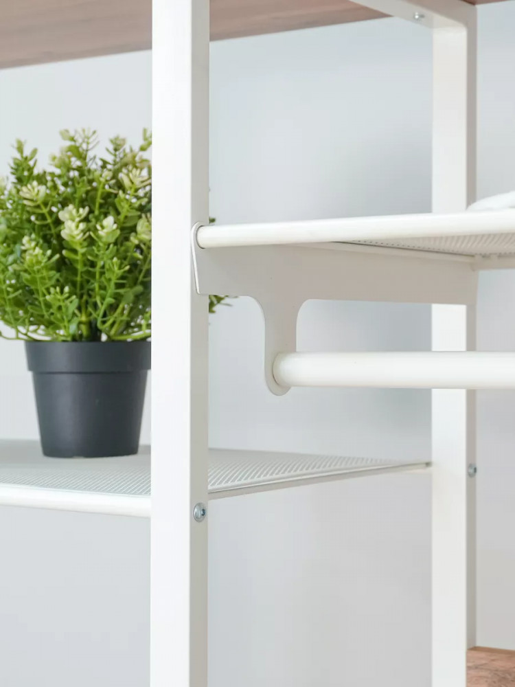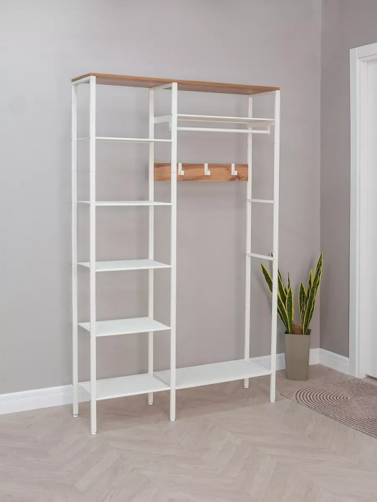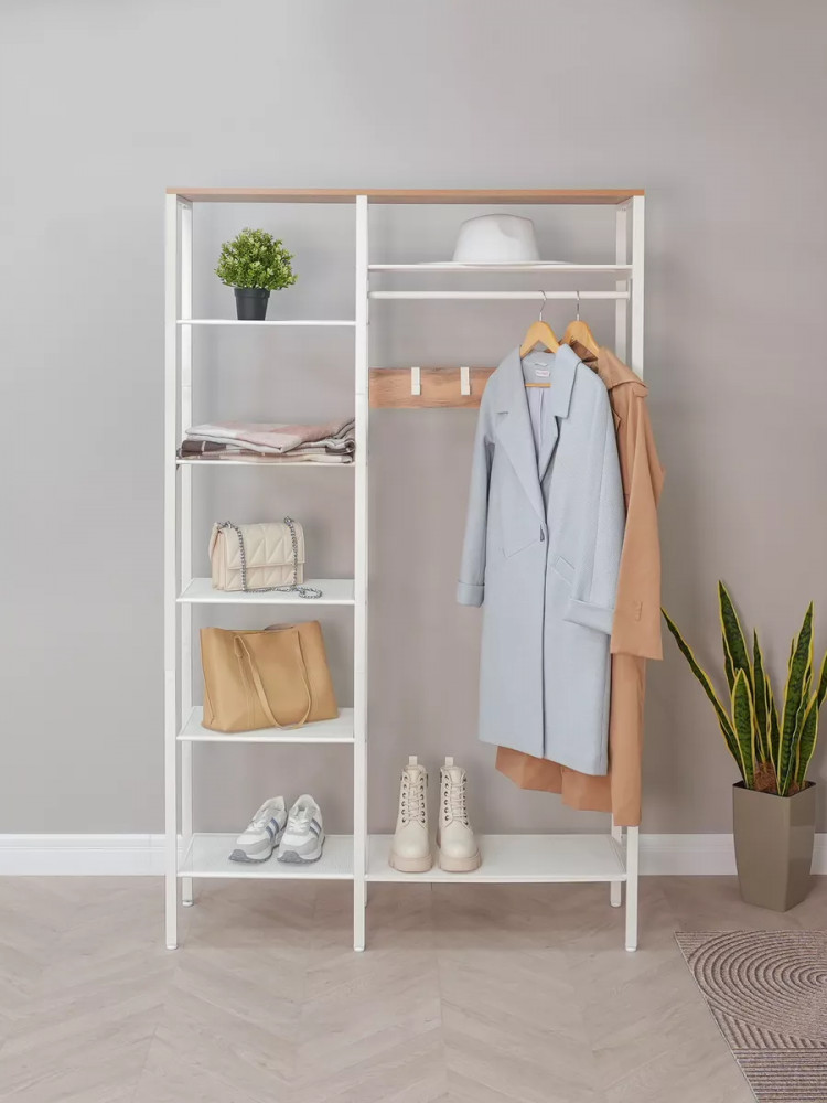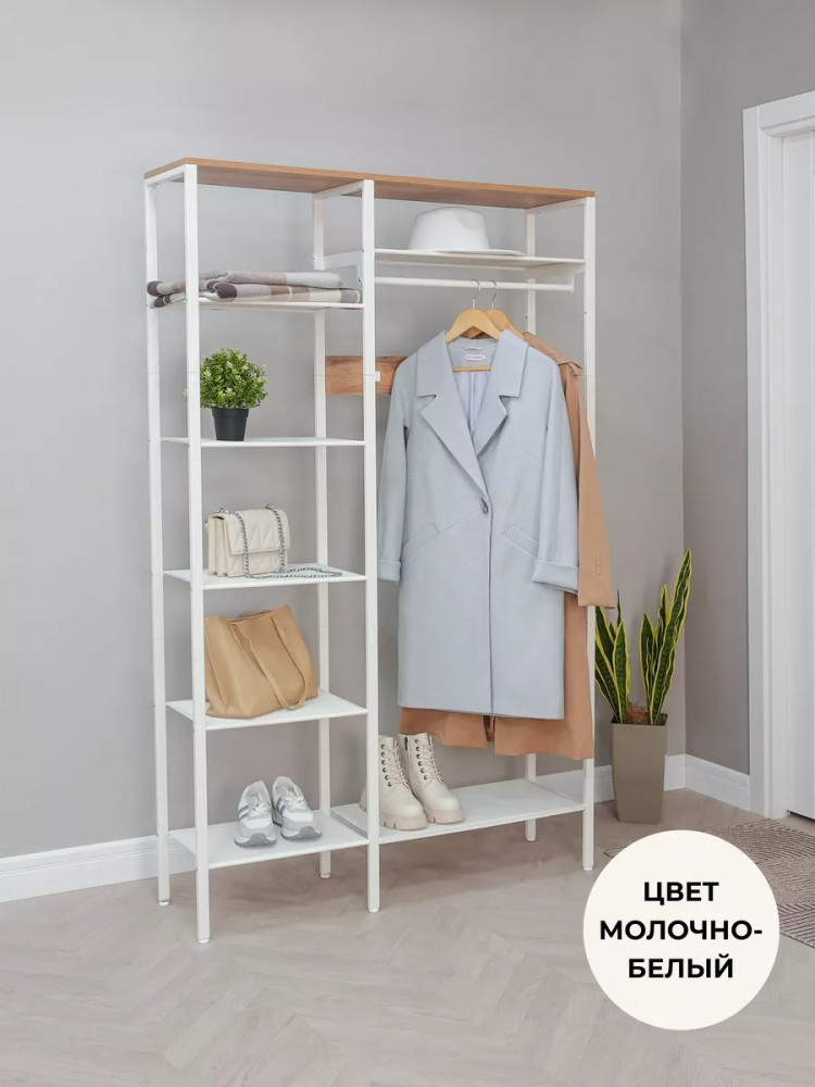 • вместительность: система оснащена несколькими полками и штангой, на которые можно повесить большое количество одежды и аксессуаров;
