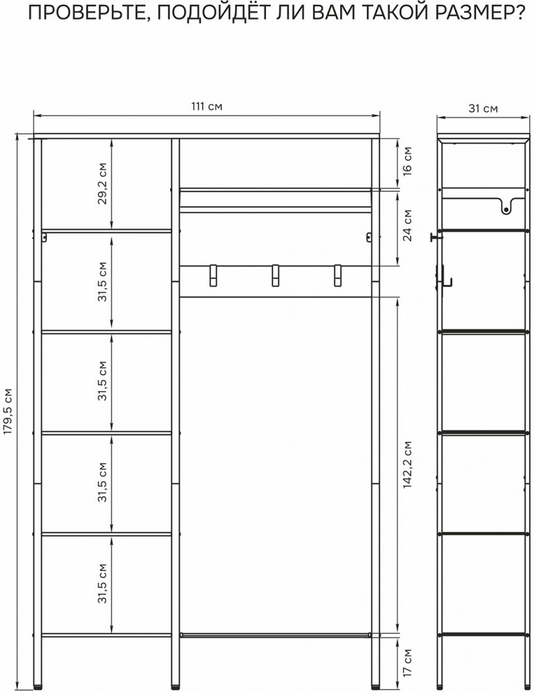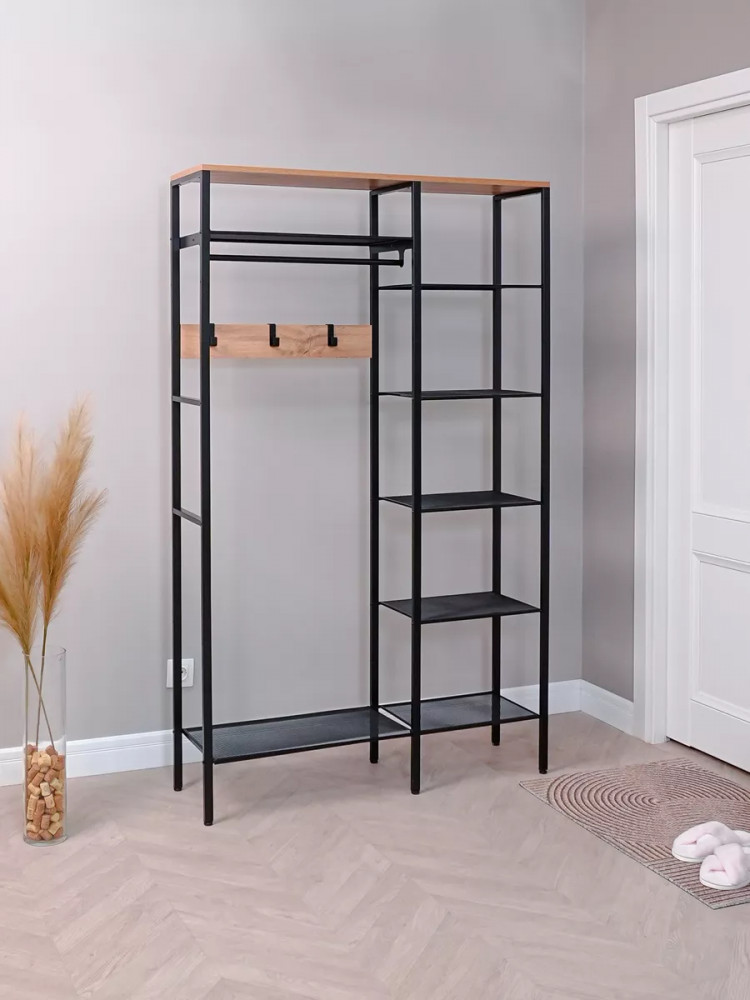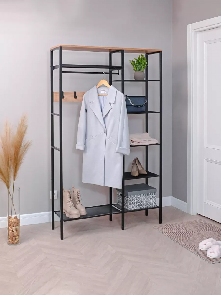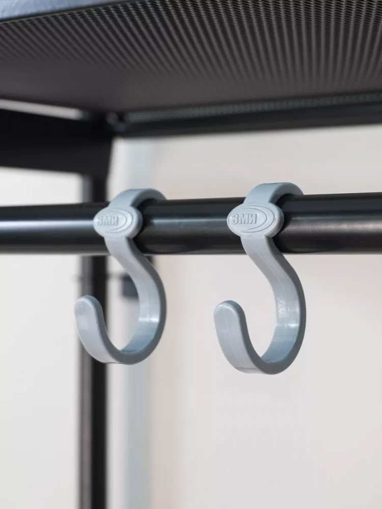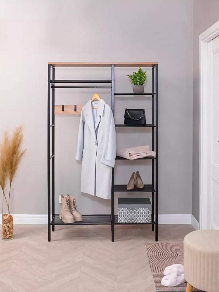 • вместительность: система оснащена несколькими полками и штангой, на которые можно повесить большое количество одежды и аксессуаров;