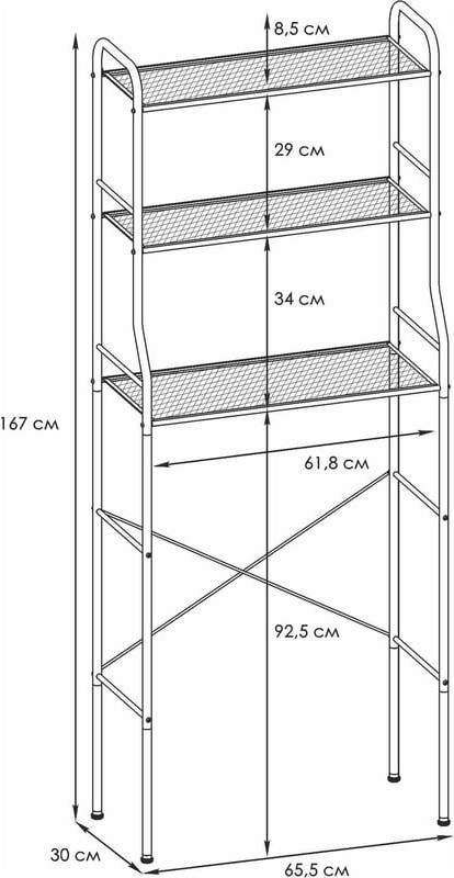 Многофункциональный и компактный стеллаж «Атлантик 23» от российского производителя "ЗМИ" выполнен в современном стиле и поможет эффективно организовать ваше пространство в в ванной комнате. Система хранения предназначена для хранения вещей над стиральной машиной и имеет 3 металлические сетчатые полки, каждая из которых выдерживает нагрузку до 8 кг. Этажерка с легкостью может заменить настенный шкафчик, при этом не требует крепления к стене. Идеально подходит для хранения одежды, полотенец, косметики и различных банок с химией. На ней идеально поместятся различные органайзеры и кофры, благодаря расстоянию между полочками. Регулируемыми ножками можно выровнять стеллаж на любой поверхности. Стеллаж долго прослужит владельцу, благодаря материалу, из которого изготовлен - металл и полимерно-порошковое покрытие. Конструкция разборная, собрать легко в домашних условиях. Вся фурнитура и инструменты в комплекте.