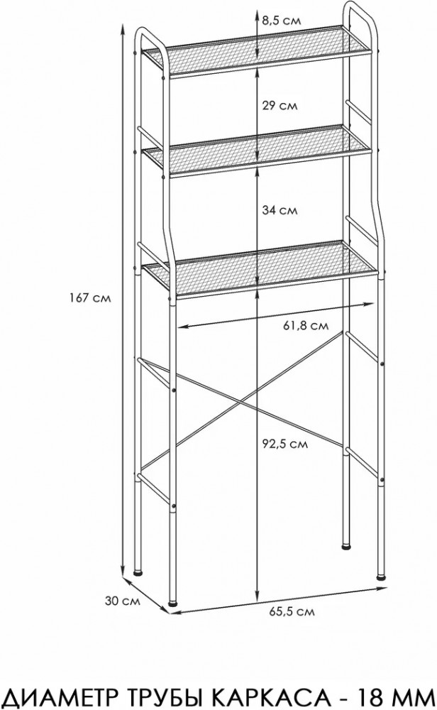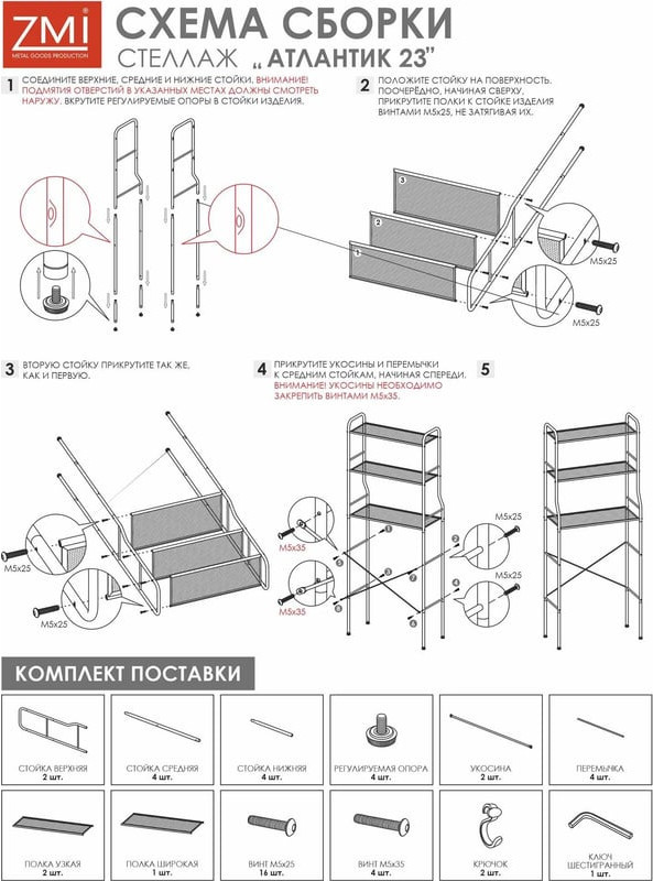 Многофункциональный и компактный стеллаж «Атлантик 23» от российского производителя "ЗМИ" выполнен в современном стиле и поможет эффективно организовать ваше пространство в в ванной комнате. Система хранения предназначена для хранения вещей над стиральной машиной и имеет 3 металлические сетчатые полки, каждая из которых выдерживает нагрузку до 8 кг. Этажерка с легкостью может заменить настенный шкафчик, при этом не требует крепления к стене. Идеально подходит для хранения одежды, полотенец, косметики и различных банок с химией. На ней идеально поместятся различные органайзеры и кофры, благодаря расстоянию между полочками. Регулируемыми ножками можно выровнять стеллаж на любой поверхности. Стеллаж долго прослужит владельцу, благодаря материалу, из которого изготовлен - металл и полимерно-порошковое покрытие. Конструкция разборная, собрать легко в домашних условиях. Вся фурнитура и инструменты в комплекте.