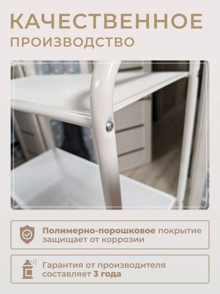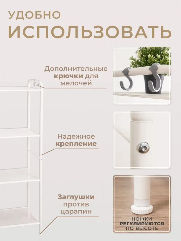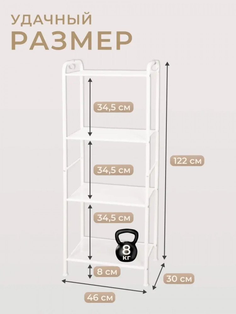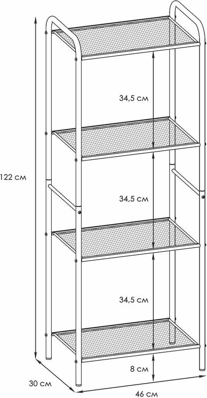 Универсальная этажерка подходит для самых разных областей применения, обеспечит порядок в гардеробной, ванной, кухне, детской комнате, гостиной, спальне, прихожей и туалете. Система хранения имеет 4 металлических сетчатых полок, каждая из которых выдерживает нагрузку до 8 кг. Она с легкостью может заменить шкаф и идеально подходит для хранения одежды, полотенец, косметики, кухонных принадлежностей, книг, учебников, банок, коробок, инструментов, цветов, рассады и даже обуви. Расстояния между полочками позволяют хранить коробки, в которые можно сложить детские игрушки. Регулируемые ножки позволяют выровнять ее на любой поверхности. Стеллаж долго прослужит владельцу, благодаря материалу, из которого изготовлен — металл и полимерно-порошковое покрытие. Конструкция разборная, собрать легко в домашних условиях. Вся фурнитура и инструменты в комплекте. Мебель продаётся напрямую от производителя, что гарантирует качество и выгодную цену. Расширенная гарантия от производителя составляет 3 года.