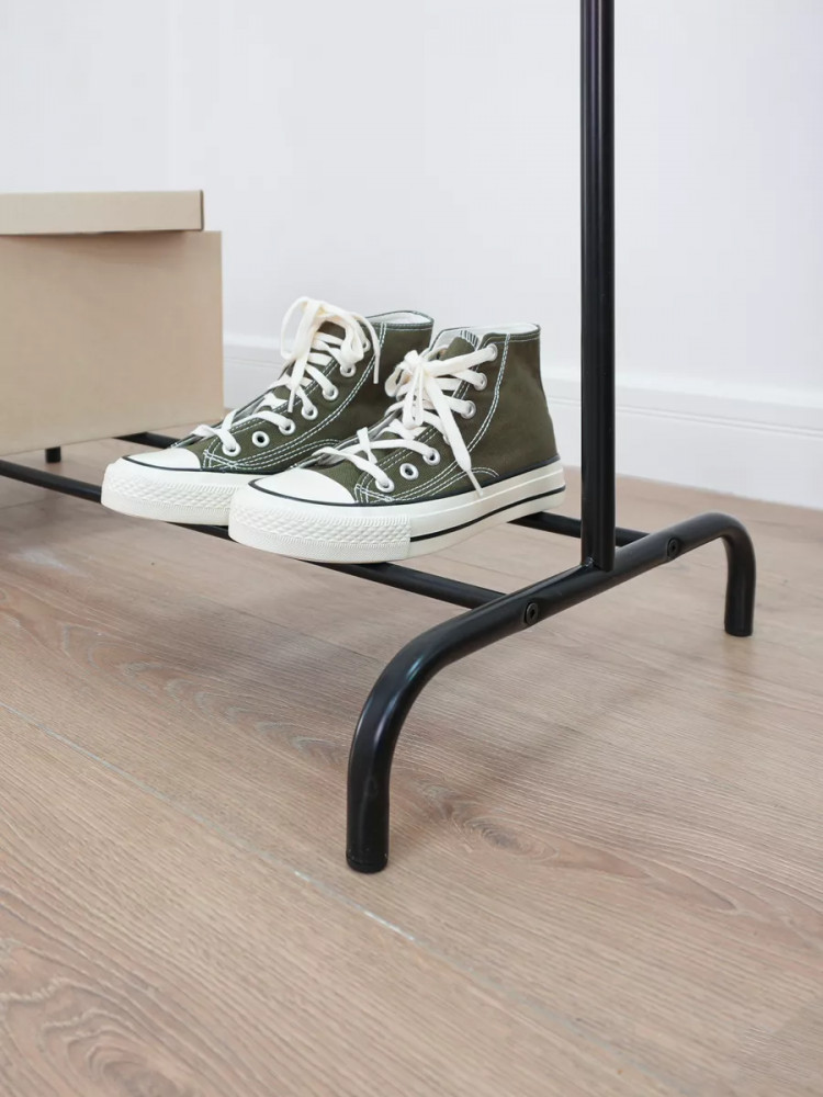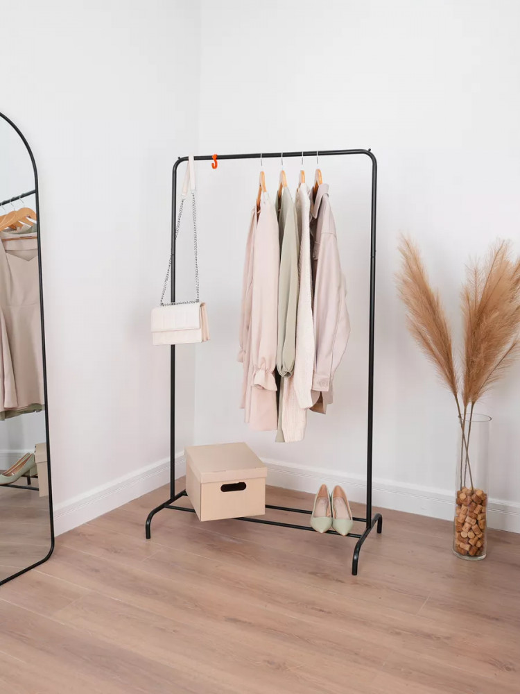 Производитель предоставляет на нее расширенную гарантию на три года. Стильный рейл упакован в удобную упаковку с ручкой, благодаря чему вы без труда сможете донести его до дома или машины от пункта выдачи. В такой картонной коробке его можно преподнести в подарок всем близким и любимым. Эта сборная мебель непременно порадует взрослых женщину и мужчину, девушку и парня школьника, даже маленьких девочку и мальчика — подростка, молодую маму. Стеллаж с надежной верхней планкой, удобной подставкой — полочкой для обуви и устойчивыми ножками пригодится в любой квартире, раздевалке, бутике и примерочной. Модель тщательно разрабатывалась дизайнерами для обеспечения комфортной системы хранения рубашек, тапочек, платьев, курток, пиджаков. Многофункциональная, прочная переносная конструкция с надежными креплениями обладает оптимальной формой и размером, шириной, чтобы легко разместиться даже в небольшом пространстве. Она гармонично впишется в скандинавский стиль и направление лофт. Это базовое комнатное приспособление, которое можно назвать классикой.