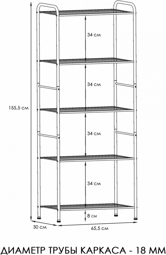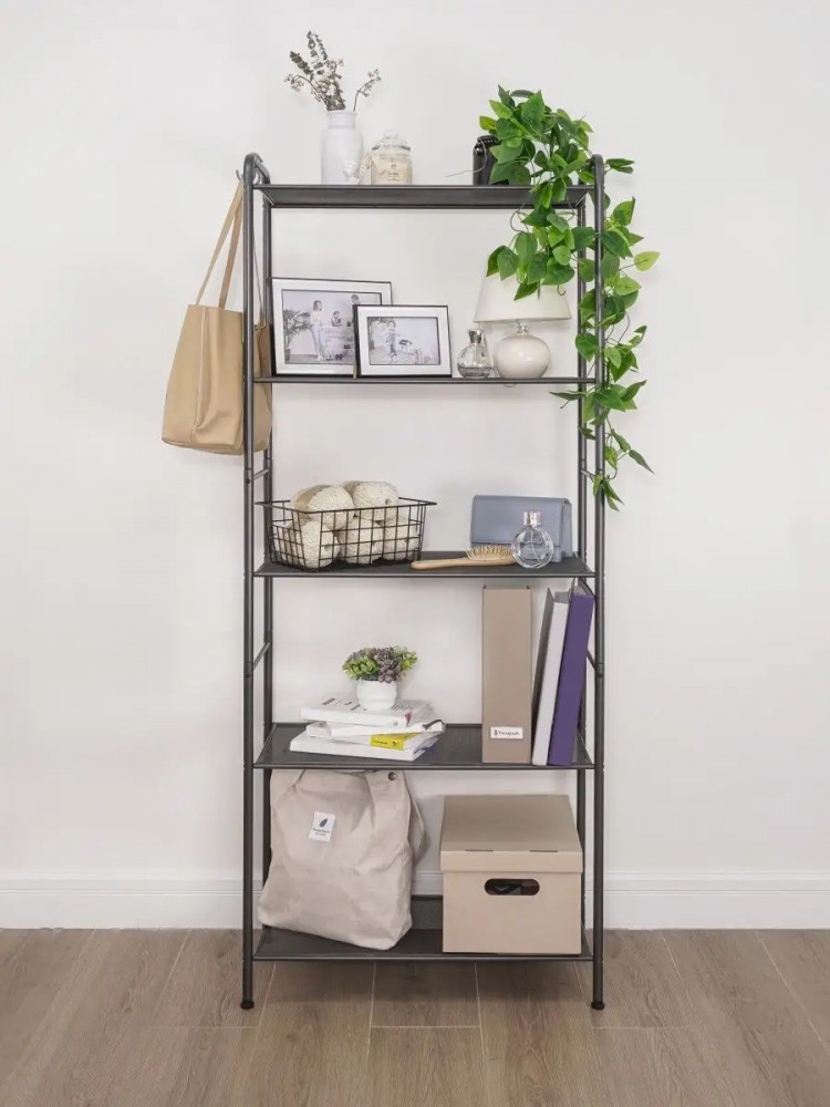 Универсальная этажерка подходит для самых разных областей применения, обеспечит порядок в гардеробной, ванной, кухне, детской комнате, гостиной, спальне, прихожей и туалете. Система хранения имеет 5 металлических сетчатых полок, каждая из которых выдерживает нагрузку до 8 кг. Она с легкостью может заменить шкаф и идеально подходит для хранения одежды, полотенец, косметики, кухонных принадлежностей, книг, учебников, банок, коробок, инструментов, цветов, рассады и даже обуви. Расстояния между полочками позволяют хранить коробки, в которые можно сложить детские игрушки. Регулируемые ножки позволяют выровнять ее на любой поверхности.