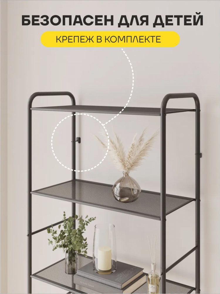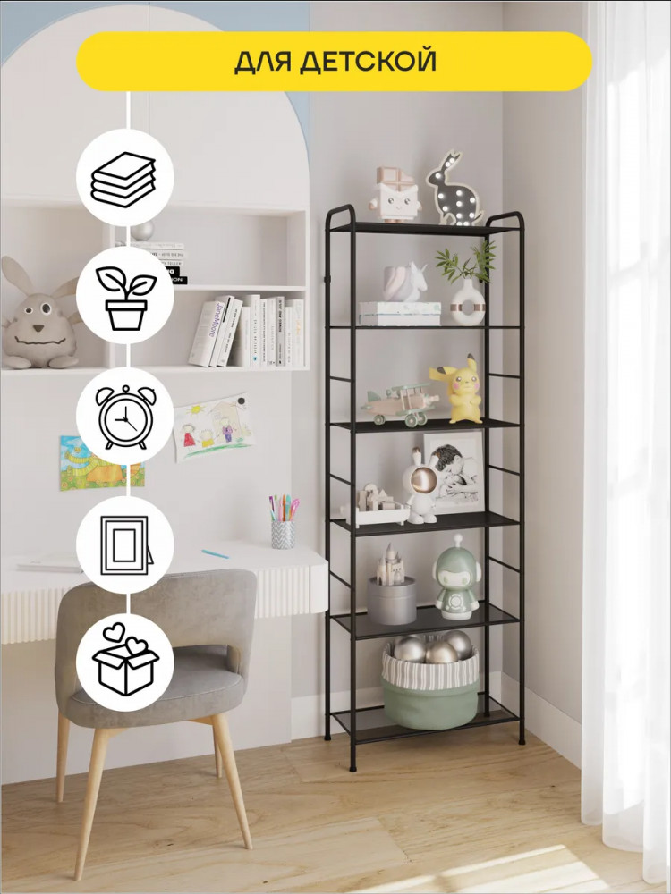 • функциональность: оснащен несколькими полками, что обеспечивает удобное хранение книг, декоративных элементов и других предметов;
