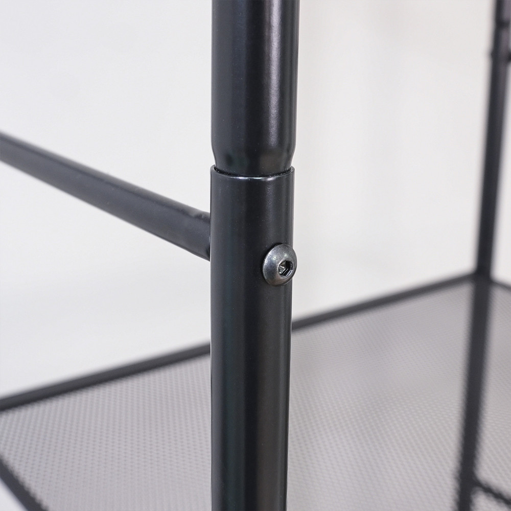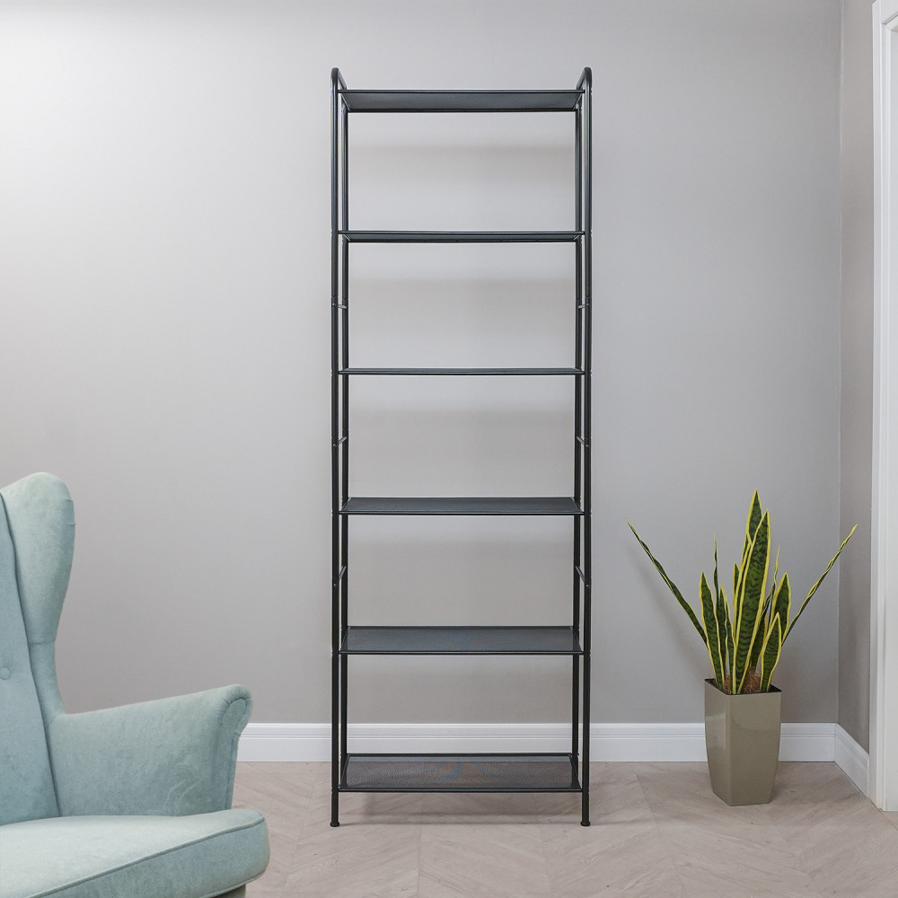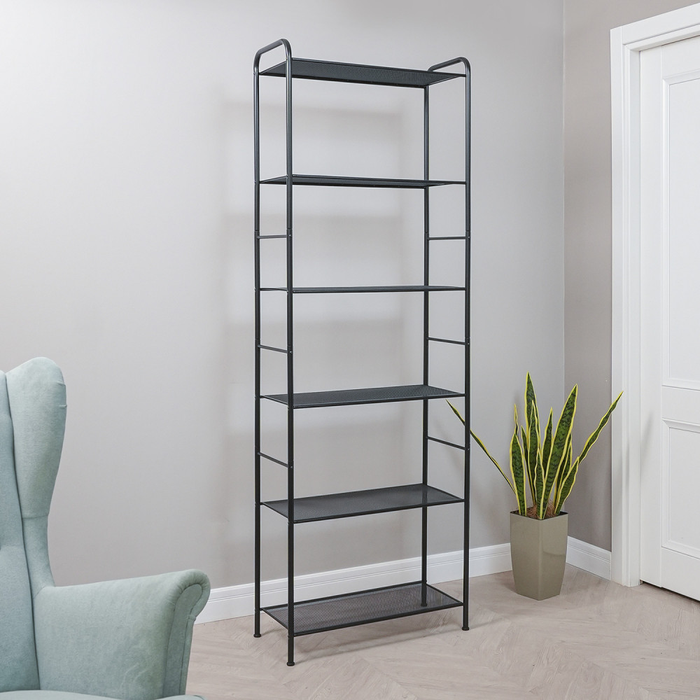 Изделие предназначено для хранения домашних и офисных предметов. Представляет собой стеллаж с шестью полками, выполненными из просечно-вытяжного листа. Разборный каркас состоит из стальной трубы. Все изделие окрашено однотонной, порошковой краской. В комплект входят регулируемые пластиковые ножки. Допустимая нагрузка на полки 8 кг.
