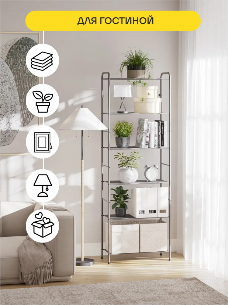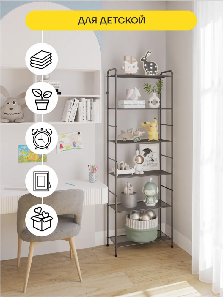 • функциональность: оснащен несколькими полками, что обеспечивает удобное хранение книг, декоративных элементов и других предметов;