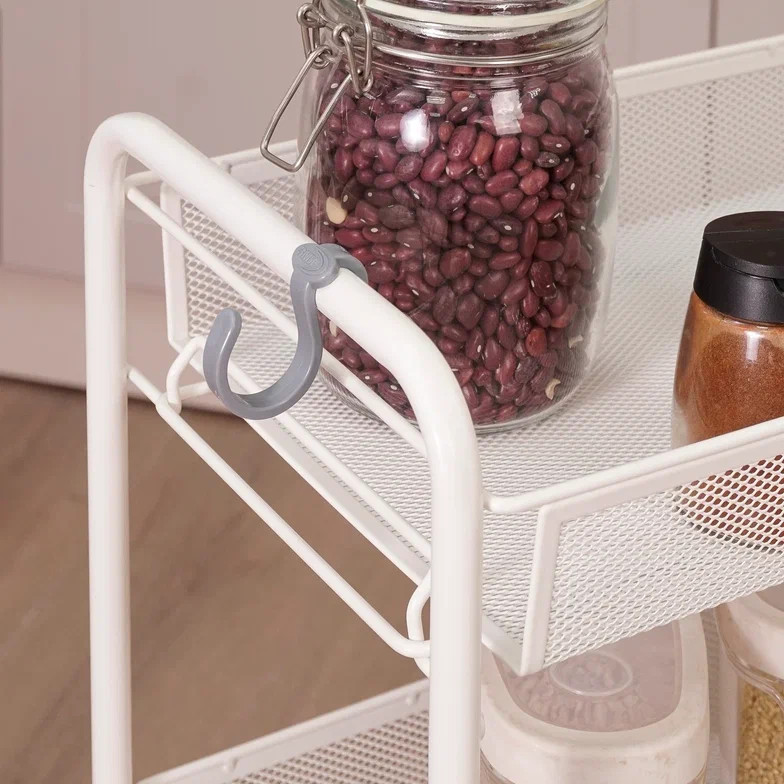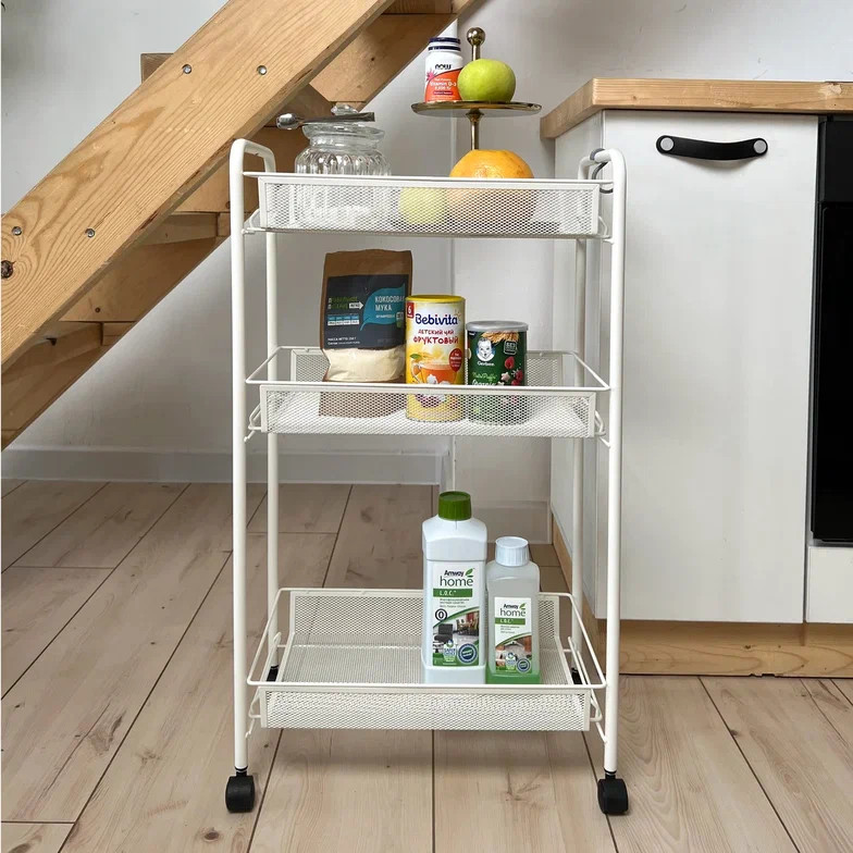 На кухне полочки будут удобны для хранения специй или приправ, бытовой и кухонной утвари, моющих средств, продуктов, овощей и фруктов. В ванной комнате стеллаж идеально подходит для хранения туалетных и косметических принадлежностей, расчесок, фена и емкостей с косметикой, других предметов и мелочей, организованных возле раковины или унитаза. В детской комнате ребенка он отлично подходит для хранения игрушек, детского питания и подгузников. В столовой будет удобен в качестве дополнительной мебели, заменяющей столик или тумбочку. В рабочем кабинете или офисном помещении в нем можно размещать папки с документами, книги и канцелярские принадлежности. В гостиной или спальне взрослых в нем можно хранить книги и журналы, пульты, зарядные устройства и гаджеты. А на балконе или террасе в нем можно разместить цветочные или вьющиеся растения, рассаду. Органайзер поставляется в разобранном виде в упаковке с удобной ручкой.