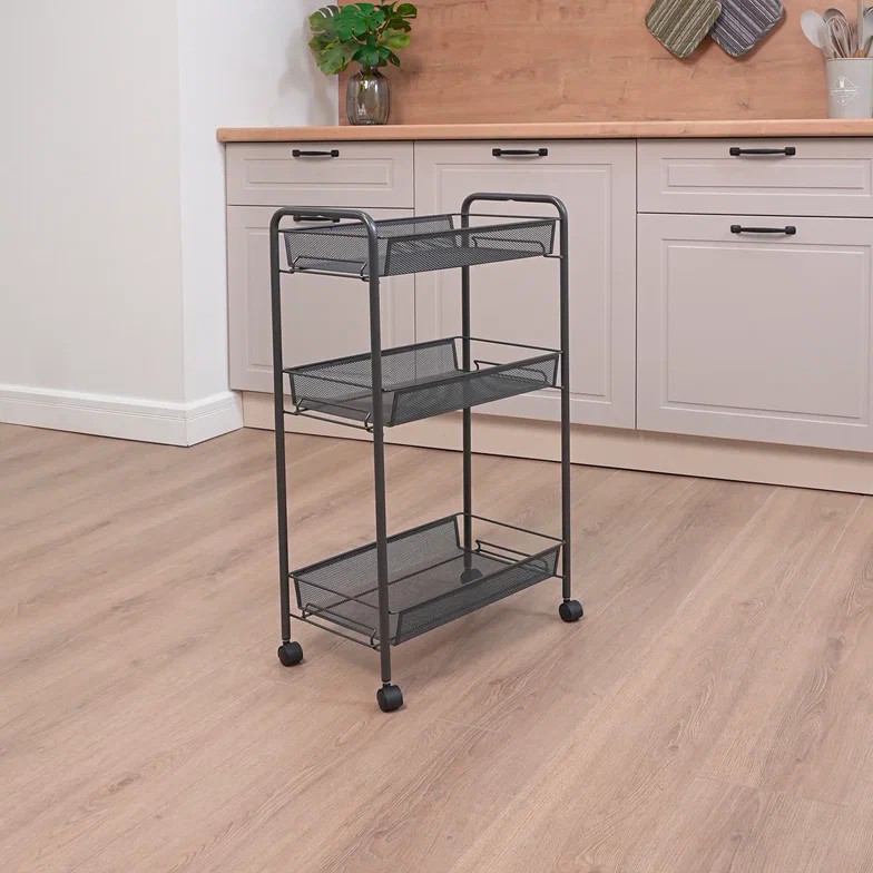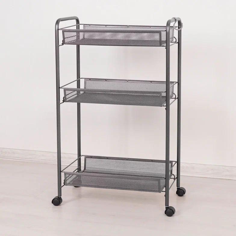 Металлическая этажерка «Ладья 2К» от российского производителя ЗМИ поможет поддерживать в доме порядок, сэкономит пространство и украсит любое помещение. Трехъярусный стеллаж с сетчатыми корзинами станет универсальным решением для грамотной организации хранения, позволит компактно разместить домашние вещи. Каркас и корзины органайзера сделаны из прочного металла, окрашены порошковой краской, которая создает на поверхности полимерный слой и защищает сталь от коррозии. Узкая этажерка легко помещается даже в небольшом малогабаритном пространстве ванной комнаты или туалета, коридора или прихожей, зала или гостиной, детской комнаты или спальни, гардеробной или балкона, бани или гаража. Каждый ярус выдерживает вес до 10 кг. На ножках предусмотрены колесики.