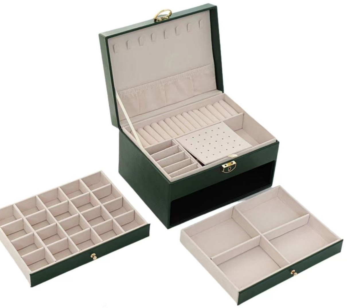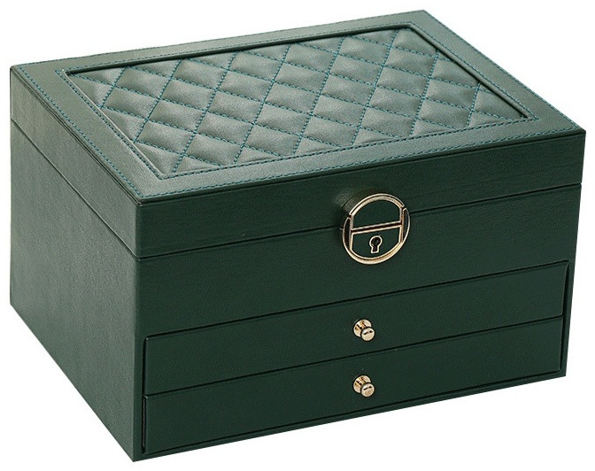 💳 Оплатить за товар можно при получении 🇰🇿 Есть бесплатная доставка по Казахстану от 1 дня 🎁 Копите бонусы с каждой покупки Шкатулка для украшений «Sharm» — элегантное и практичное решение для хранения ваших украшений. Выполнена из высококачественной искусственной кожи в тёмно-зелёном цвете с тиснёной крышкой, она сочетает в себе стиль и функциональность. Компактный размер делает её удобной для размещения в любом интерьере. Внутри — мягкая замшевая отделка, три выдвижных уровня и надёжная застёжка на замок, что позволяет аккуратно хранить кольца, серьги, цепочки, браслеты и часы. Шкатулка «Sharm» — это не только удобная организация ваших сокровищ, но и отличный подарок для себя или близких. |