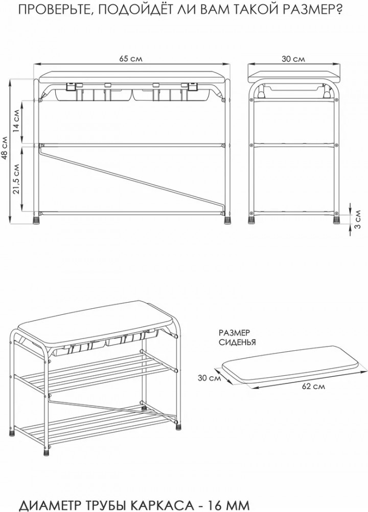 • сиденье 650 мм — 1 шт.;